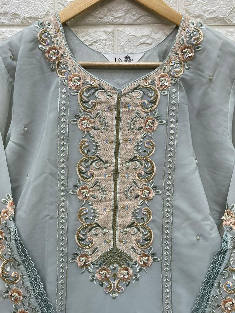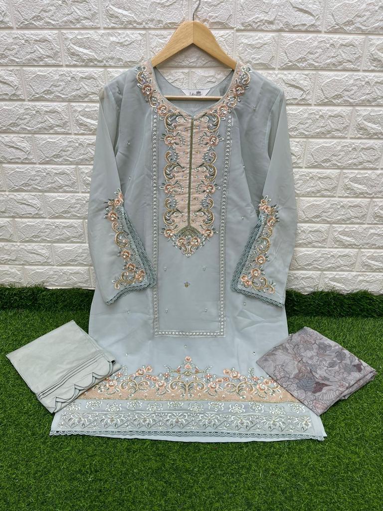 Laxuria Trendz D No 1247 Georgette Kurti Pant With Dupatta