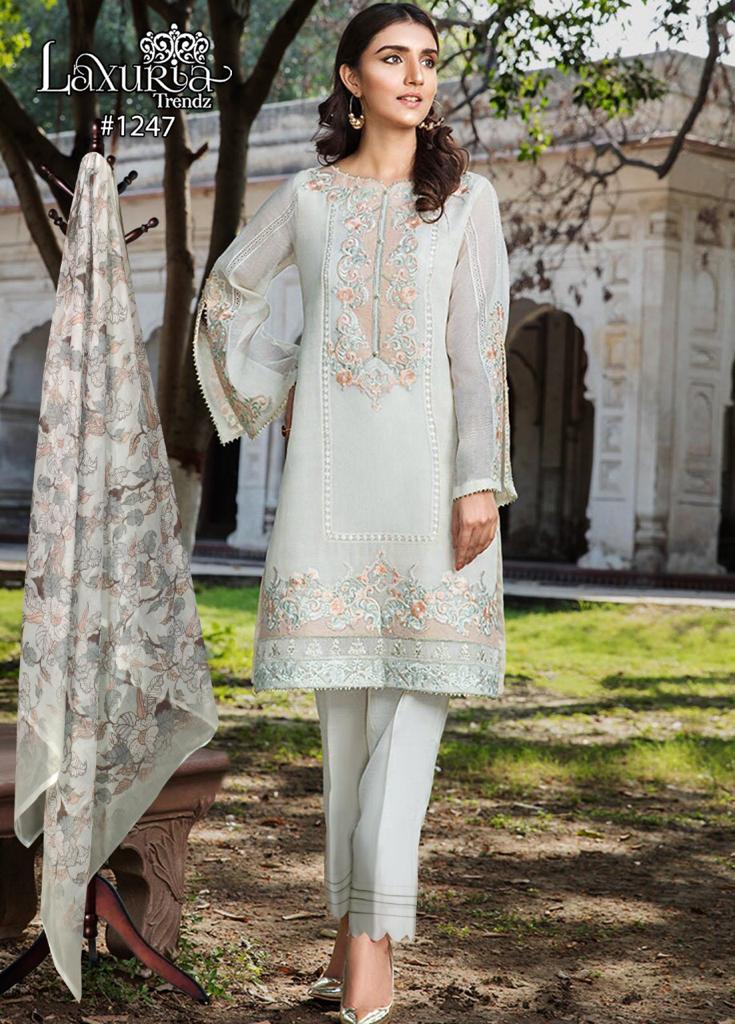 Buy Online Laxuria Trendz D No 1247 Georgette Kurti Pant With Dupatta 5 Pcs of Full Catalogue at Wholesale Price. Looking for Laxuria Trendz D No 1247 Georgette Kurti Pant With Dupatta Full Catalouge at Best Price? Buy Now Laxuria Trendz D No 1247 Georgette Kurti Pant With Dupatta at Wholesale Rate of Rs 7495 with Total 5 Pcs from authroized dealer and supplier of Brand. Cost of Each piece is just only Rs 1499 which is very low and affordable price to resale the product in your retail store ,This is Surat based Wholesale Supplier & Dealer of Brand. Click on Brand name to Know more about Brand's products.Call or Whatsapp on 9898838984 for booking or enquiry