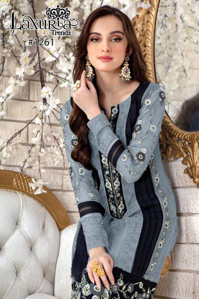 Buy Online Laxuria Trendz D No 1261 Georgette Kurti Bottom Duppata Collection Manufacturer Surat 5 Pcs of Full Catalogue at Wholesale Price. Looking for Laxuria Trendz D No 1261 Georgette Kurti Bottom Duppata Collection Manufacturer Surat Full Catalouge at Best Price? Buy Now Laxuria Trendz D No 1261 Georgette Kurti Bottom Duppata Collection Manufacturer Surat at Wholesale Rate of Rs 7750 with Total 5 Pcs from authroized dealer and supplier of Brand. Cost of Each piece is just only Rs 1550 which is very low and affordable price to resale the product in your retail store ,This is Surat based Wholesale Supplier & Dealer of Brand. Click on Brand name to Know more about Brand's products.Call or Whatsapp on 9898838984 for booking or enquiry