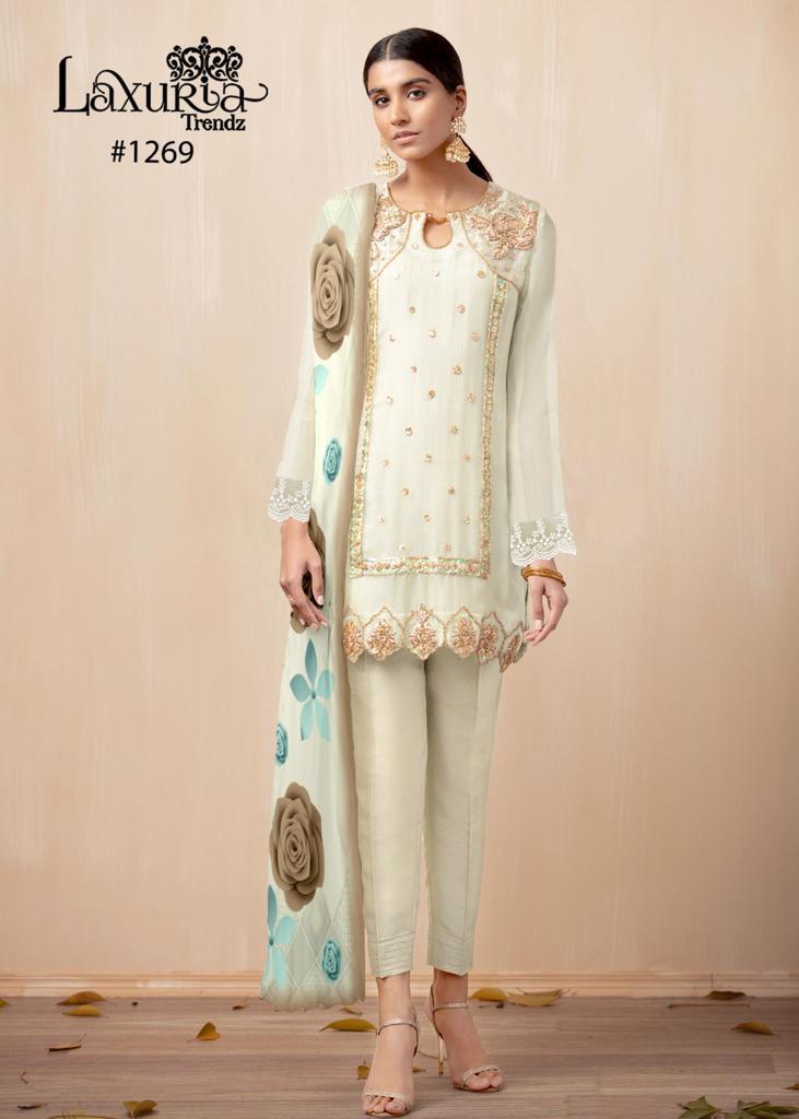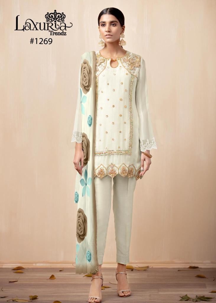 Buy Online Laxuria Trendz D No 1269 Kurti Pant With Dupatta Concept 5 Pcs of Full Catalogue at Wholesale Price. Looking for Laxuria Trendz D No 1269 Kurti Pant With Dupatta Concept Full Catalouge at Best Price? Buy Now Laxuria Trendz D No 1269 Kurti Pant With Dupatta Concept at Wholesale Rate of Rs 7000 with Total 5 Pcs from authroized dealer and supplier of Brand. Cost of Each piece is just only Rs 1400 which is very low and affordable price to resale the product in your retail store ,This is Surat based Wholesale Supplier & Dealer of Brand. Click on Brand name to Know more about Brand's products.Call or Whatsapp on 9898838984 for booking or enquiry