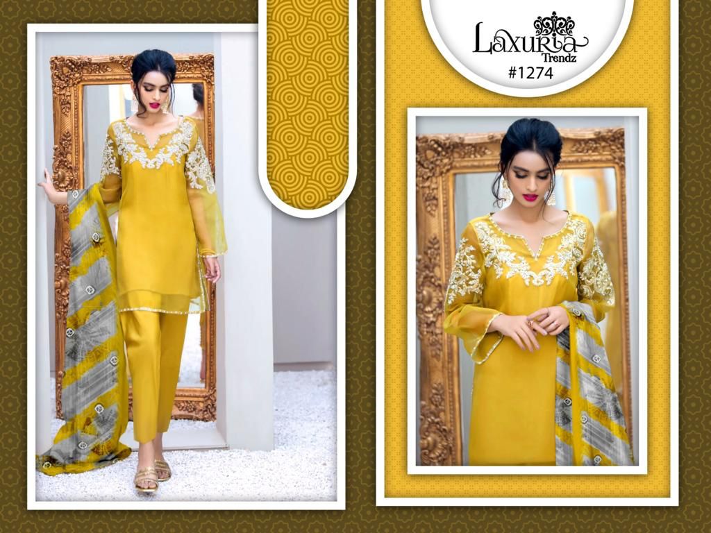 Buy Online Laxuria Trendz D No 1274 New Handwork Collection Organza Kurti With Pant And Dupatta Concept 5 Pcs of Full Catalogue at Wholesale Price. Looking for Laxuria Trendz D No 1274 New Handwork Collection Organza Kurti With Pant And Dupatta Concept Full Catalouge at Best Price? Buy Now Laxuria Trendz D No 1274 New Handwork Collection Organza Kurti With Pant And Dupatta Concept at Wholesale Rate of Rs 7500 with Total 5 Pcs from authroized dealer and supplier of Brand. Cost of Each piece is just only Rs 1500 which is very low and affordable price to resale the product in your retail store ,This is Surat based Wholesale Supplier & Dealer of Brand. Click on Brand name to Know more about Brand's products.Call or Whatsapp on 9898838984 for booking or enquiry