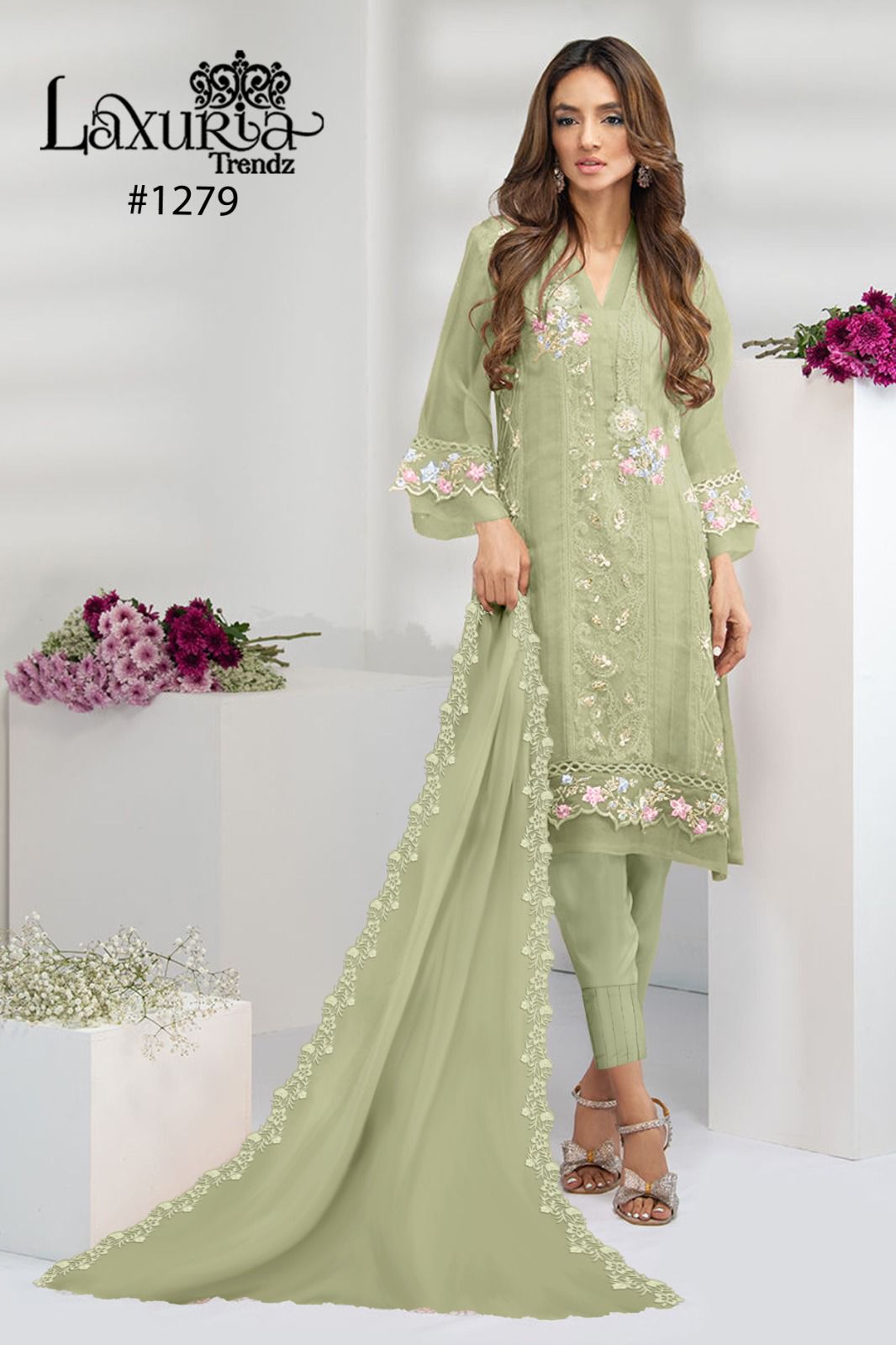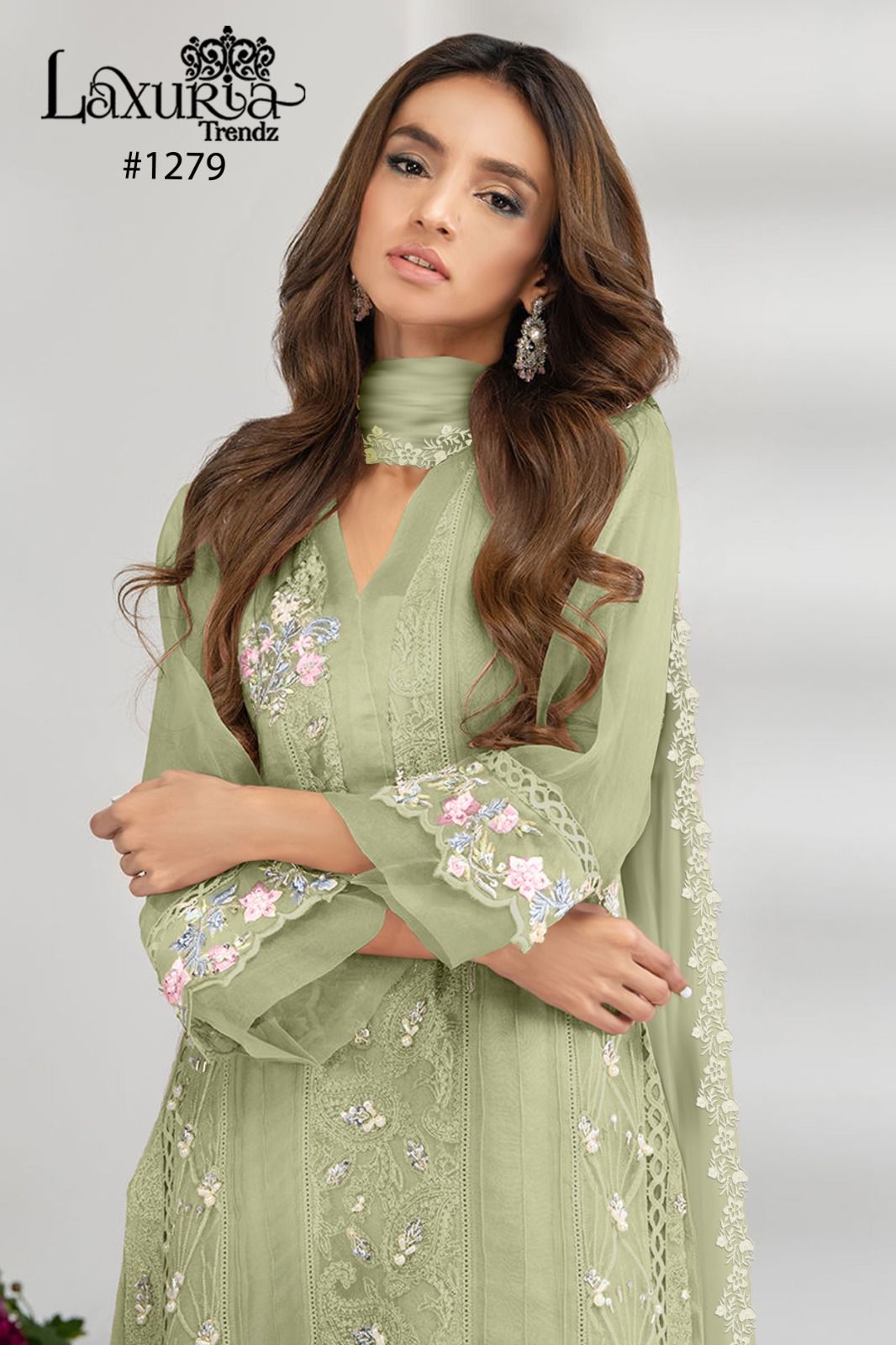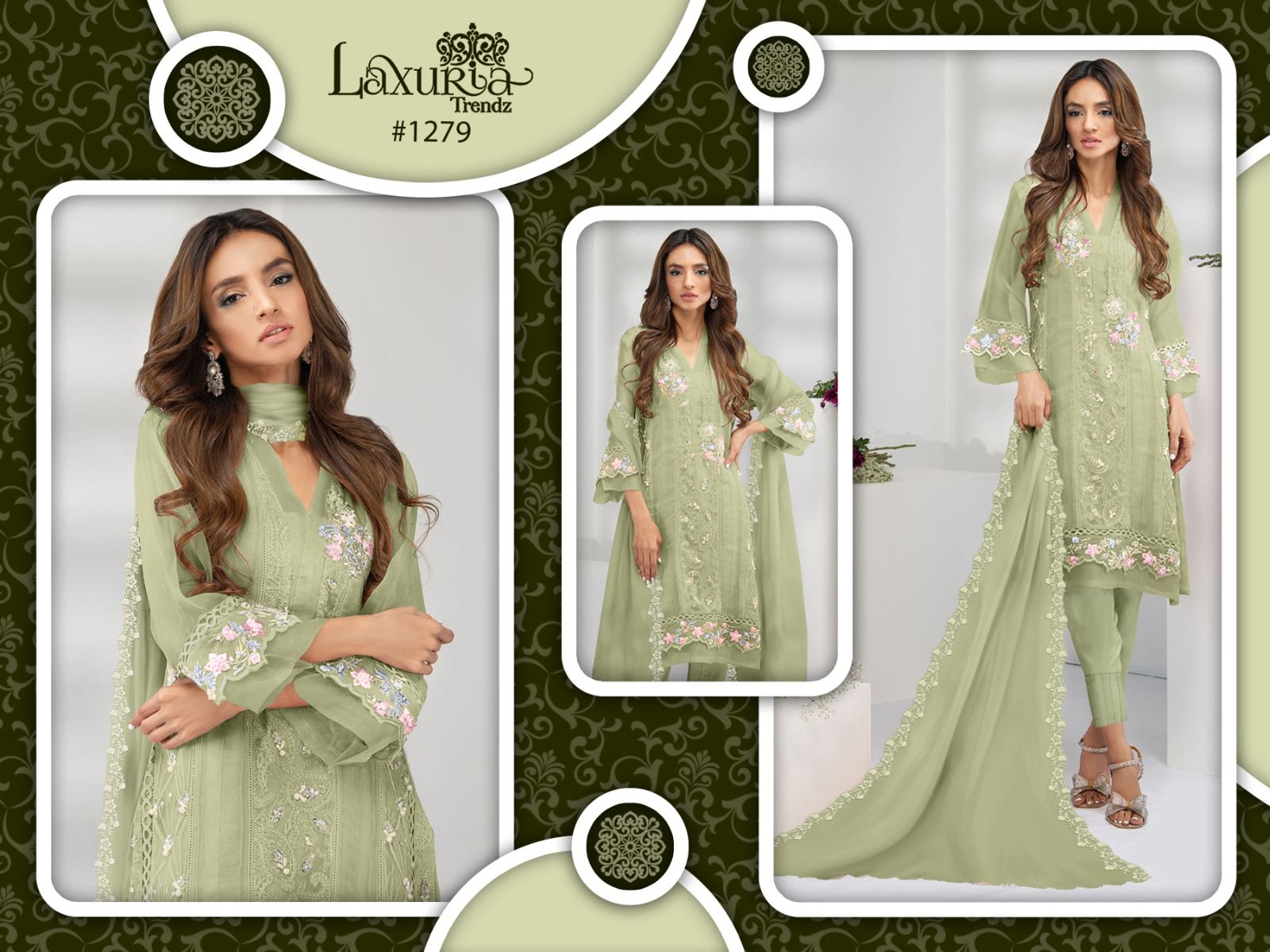 Buy Online Laxuria Trendz D No 1279 Georgette Handwork Collection 5 Pcs of Full Catalogue at Wholesale Price. Looking for Laxuria Trendz D No 1279 Georgette Handwork Collection Full Catalouge at Best Price? Buy Now Laxuria Trendz D No 1279 Georgette Handwork Collection at Wholesale Rate of Rs 7250 with Total 5 Pcs from authroized dealer and supplier of Brand. Cost of Each piece is just only Rs 1450 which is very low and affordable price to resale the product in your retail store ,This is Surat based Wholesale Supplier & Dealer of Brand. Click on Brand name to Know more about Brand's products.Call or Whatsapp on 9898838984 for booking or enquiry
