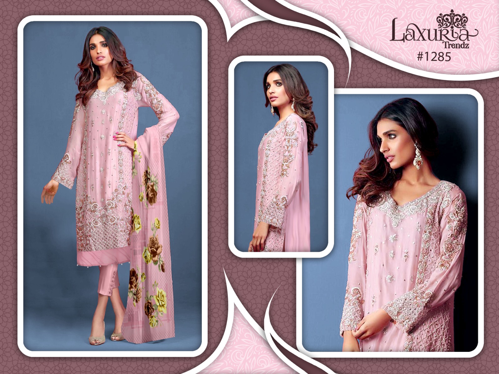 Buy Online Laxuria Trendz D No 1285 Festival Special Handwork Collection 5 Pcs of Full Catalogue at Wholesale Price. Looking for Laxuria Trendz D No 1285 Festival Special Handwork Collection Full Catalouge at Best Price? Buy Now Laxuria Trendz D No 1285 Festival Special Handwork Collection at Wholesale Rate of Rs 7750 with Total 5 Pcs from authroized dealer and supplier of Brand. Cost of Each piece is just only Rs 1550 which is very low and affordable price to resale the product in your retail store ,This is Surat based Wholesale Supplier & Dealer of Brand. Click on Brand name to Know more about Brand's products.Call or Whatsapp on 9898838984 for booking or enquiry