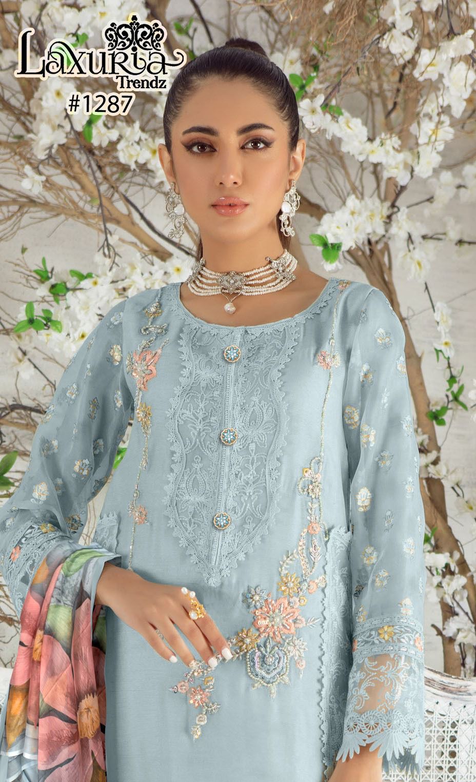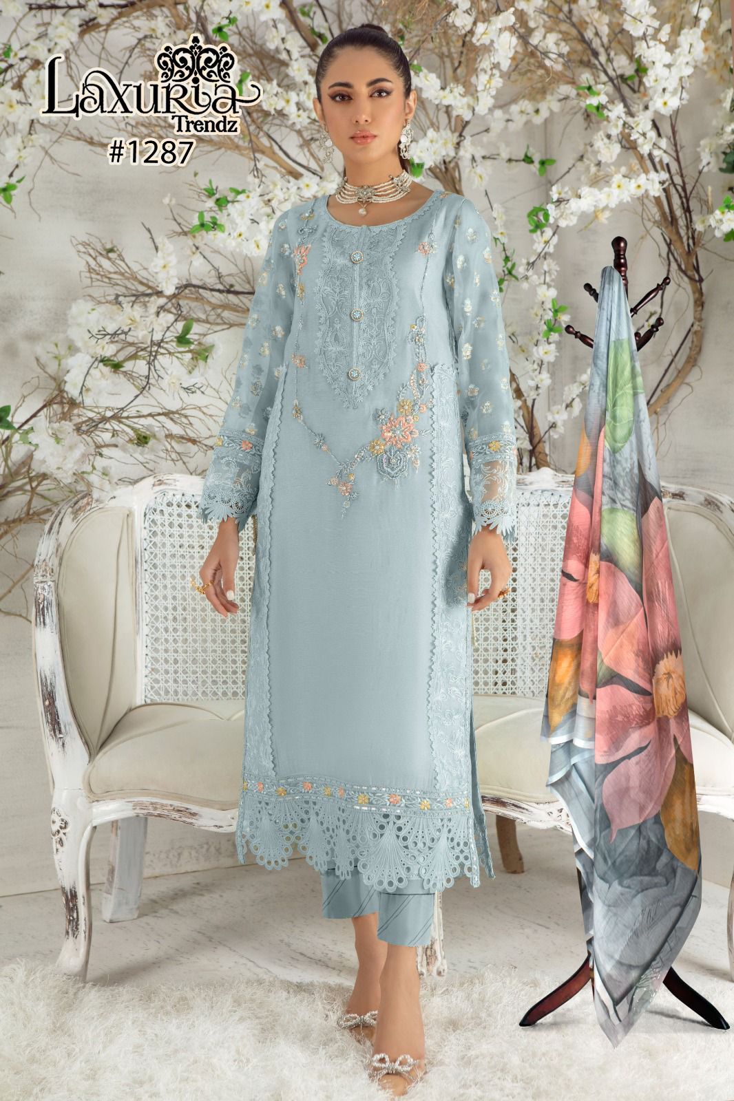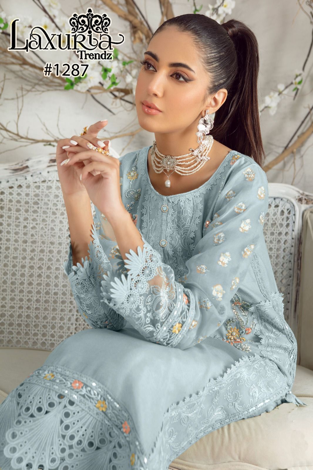 Buy Online Laxuria Trendz D No 1287 Handwork Collection Kurti Pant With Dupatta 5 Pcs of Full Catalogue at Wholesale Price. Looking for Laxuria Trendz D No 1287 Handwork Collection Kurti Pant With Dupatta Full Catalouge at Best Price? Buy Now Laxuria Trendz D No 1287 Handwork Collection Kurti Pant With Dupatta at Wholesale Rate of Rs 7750 with Total 5 Pcs from authroized dealer and supplier of Brand. Cost of Each piece is just only Rs 1550 which is very low and affordable price to resale the product in your retail store ,This is Surat based Wholesale Supplier & Dealer of Brand. Click on Brand name to Know more about Brand's products.Call or Whatsapp on 9898838984 for booking or enquiry
