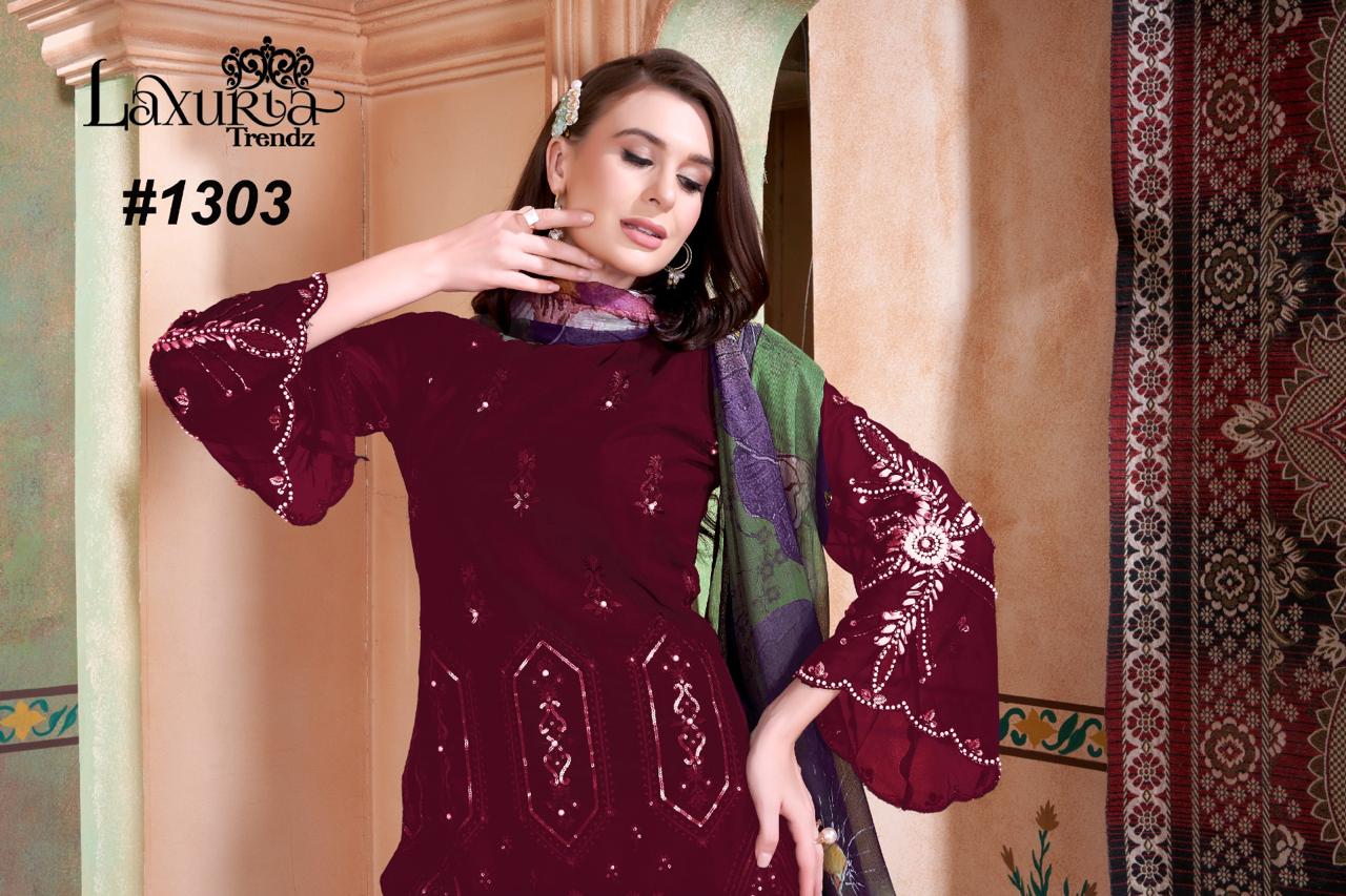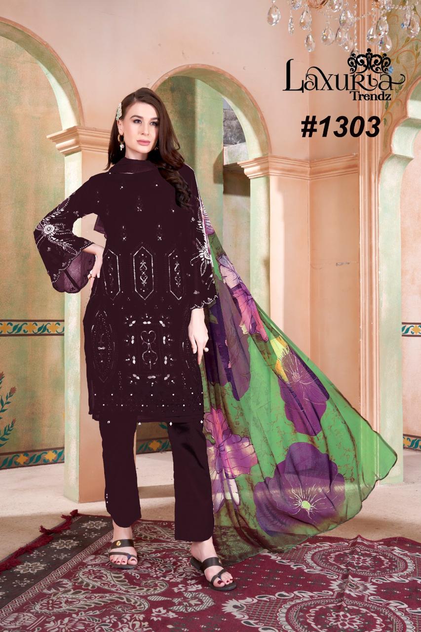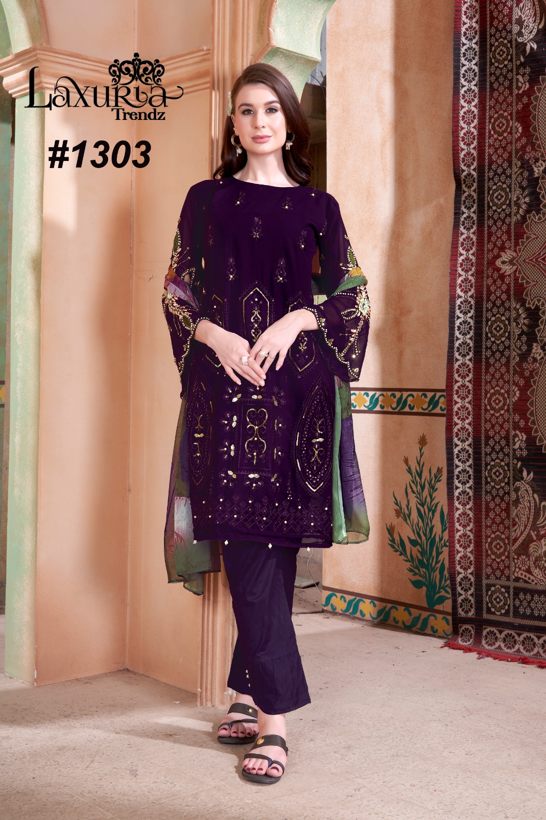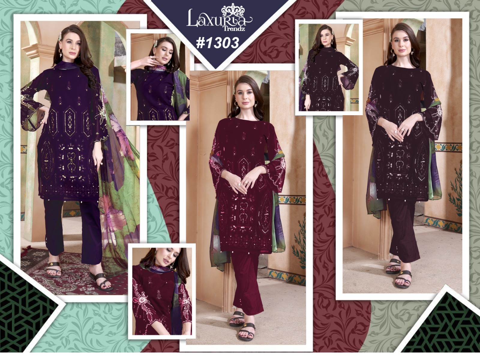 Buy Online Laxuria Trendz D No 1303 Georgette Handwork Collection Manufacturer Surat 3 Pcs of Full Catalogue at Wholesale Price. Looking for Laxuria Trendz D No 1303 Georgette Handwork Collection Manufacturer Surat Full Catalouge at Best Price? Buy Now Laxuria Trendz D No 1303 Georgette Handwork Collection Manufacturer Surat at Wholesale Rate of Rs 4650 with Total 3 Pcs from authroized dealer and supplier of Brand. Cost of Each piece is just only Rs 1550 which is very low and affordable price to resale the product in your retail store ,This is Surat based Wholesale Supplier & Dealer of Brand. Click on Brand name to Know more about Brand's products.Call or Whatsapp on 9898838984 for booking or enquiry