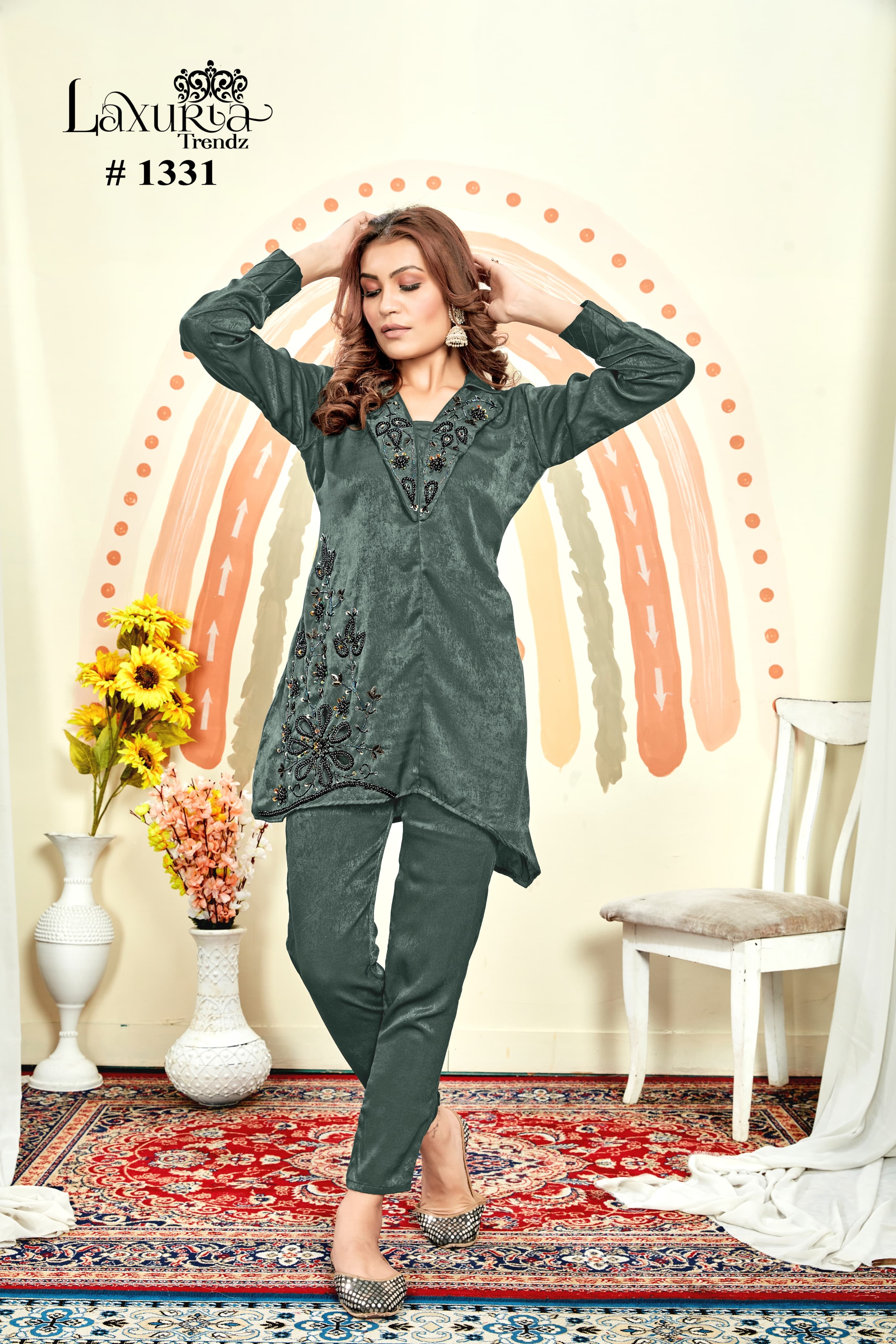Buy Online Laxuria Trendz D No 1331 Pure Velvet Classy Collection 5 Pcs of Full Catalogue at Wholesale Price. Looking for Laxuria Trendz D No 1331 Pure Velvet Classy Collection Full Catalouge at Best Price? Buy Now Laxuria Trendz D No 1331 Pure Velvet Classy Collection at Wholesale Rate of Rs 6500 with Total 5 Pcs from authroized dealer and supplier of Brand. Cost of Each piece is just only Rs 1300 which is very low and affordable price to resale the product in your retail store ,This is Surat based Wholesale Supplier & Dealer of Brand. Click on Brand name to Know more about Brand's products.Call or Whatsapp on 9898838984 for booking or enquiry