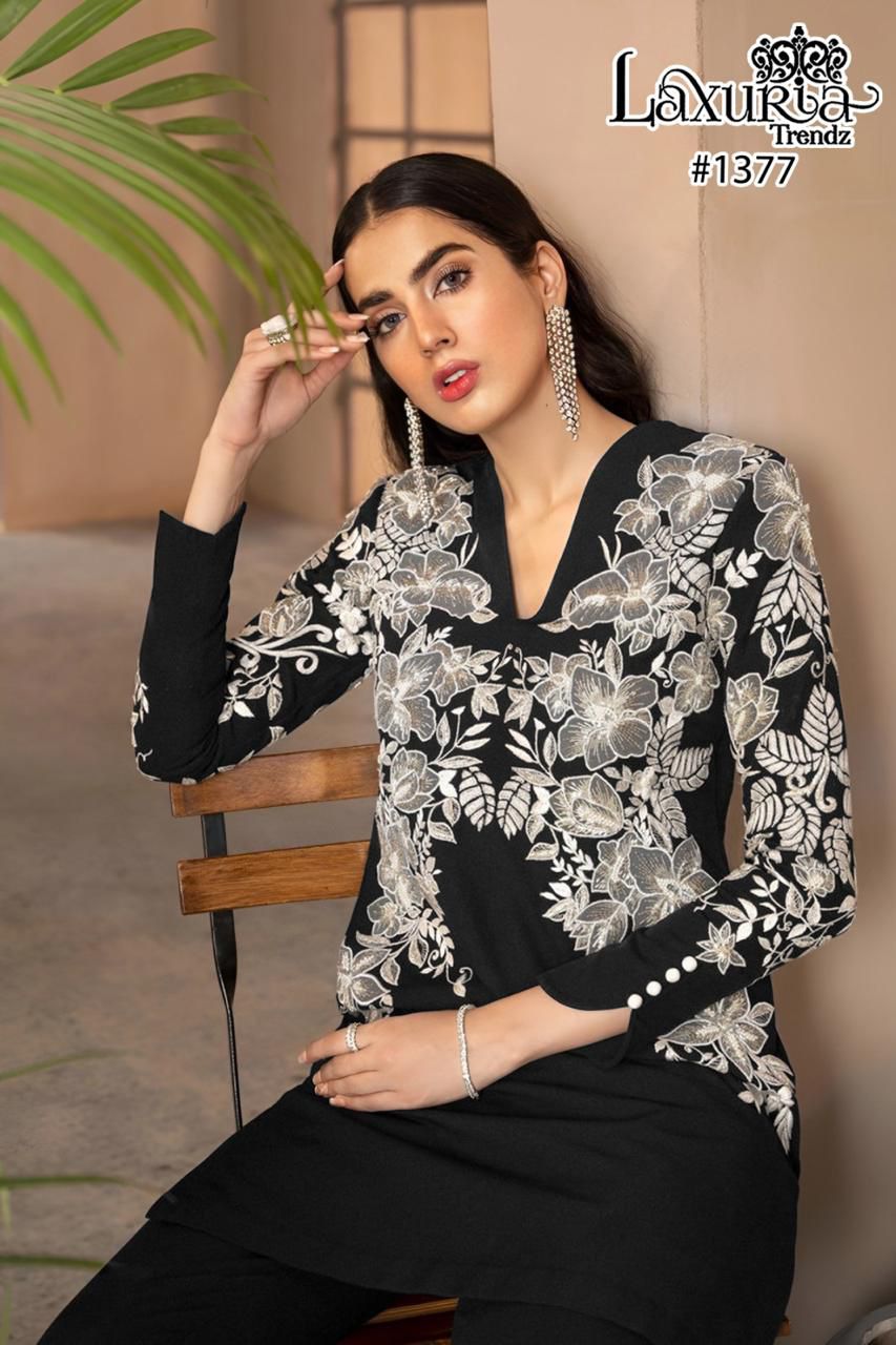 Buy Online Laxuria Trendz D No 1377 Handwork Kurti Pant Dupatta Concept 5 Pcs of Full Catalogue at Wholesale Price. Looking for Laxuria Trendz D No 1377 Handwork Kurti Pant Dupatta Concept Full Catalouge at Best Price? Buy Now Laxuria Trendz D No 1377 Handwork Kurti Pant Dupatta Concept at Wholesale Rate of Rs 8000 with Total 5 Pcs from authroized dealer and supplier of Brand. Cost of Each piece is just only Rs 1600 which is very low and affordable price to resale the product in your retail store ,This is Surat based Wholesale Supplier & Dealer of Brand. Click on Brand name to Know more about Brand's products.Call or Whatsapp on 9898838984 for booking or enquiry