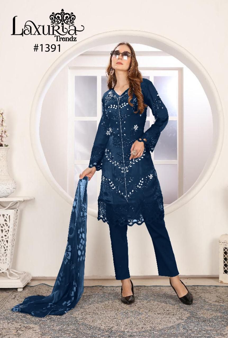 Buy Online Laxuria Trendz D No 1391 Eid Collection 3 Pcs of Full Catalogue at Wholesale Price. Looking for Laxuria Trendz D No 1391 Eid Collection Full Catalouge at Best Price? Buy Now Laxuria Trendz D No 1391 Eid Collection at Wholesale Rate of Rs 5400 with Total 3 Pcs from authroized dealer and supplier of Brand. Cost of Each piece is just only Rs 1800 which is very low and affordable price to resale the product in your retail store ,This is Surat based Wholesale Supplier & Dealer of Brand. Click on Brand name to Know more about Brand's products.Call or Whatsapp on 9898838984 for booking or enquiry