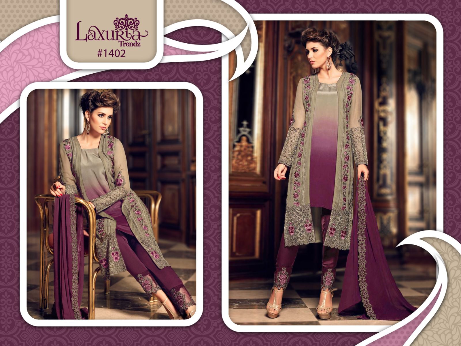 Buy Online Laxuria Trendz D No 1402 Luxury Pret Collection Manufacturer Surat 5 Pcs of Full Catalogue at Wholesale Price. Looking for Laxuria Trendz D No 1402 Luxury Pret Collection Manufacturer Surat Full Catalouge at Best Price? Buy Now Laxuria Trendz D No 1402 Luxury Pret Collection Manufacturer Surat at Wholesale Rate of Rs 8500 with Total 5 Pcs from authroized dealer and supplier of Brand. Cost of Each piece is just only Rs 1700 which is very low and affordable price to resale the product in your retail store ,This is Surat based Wholesale Supplier & Dealer of Brand. Click on Brand name to Know more about Brand's products.Call or Whatsapp on 9898838984 for booking or enquiry