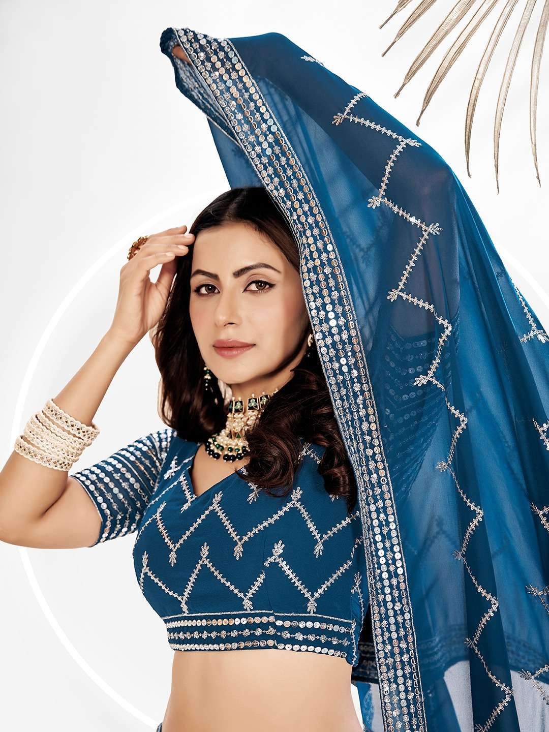 *Blouse(Unstitched)* Blouse Fabric : Georgette Blouse work : Sequins and embroidery Work Blouse Length : 1 Meter