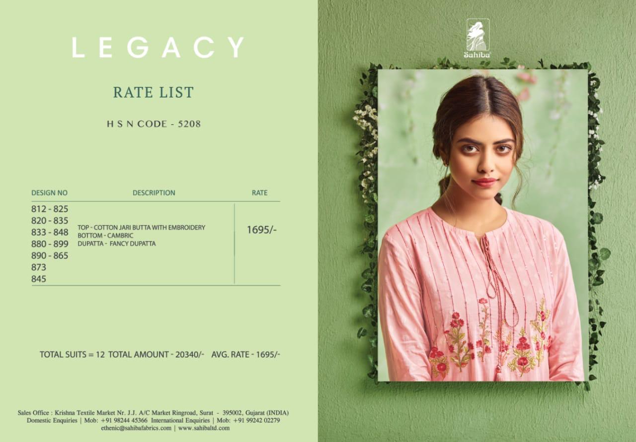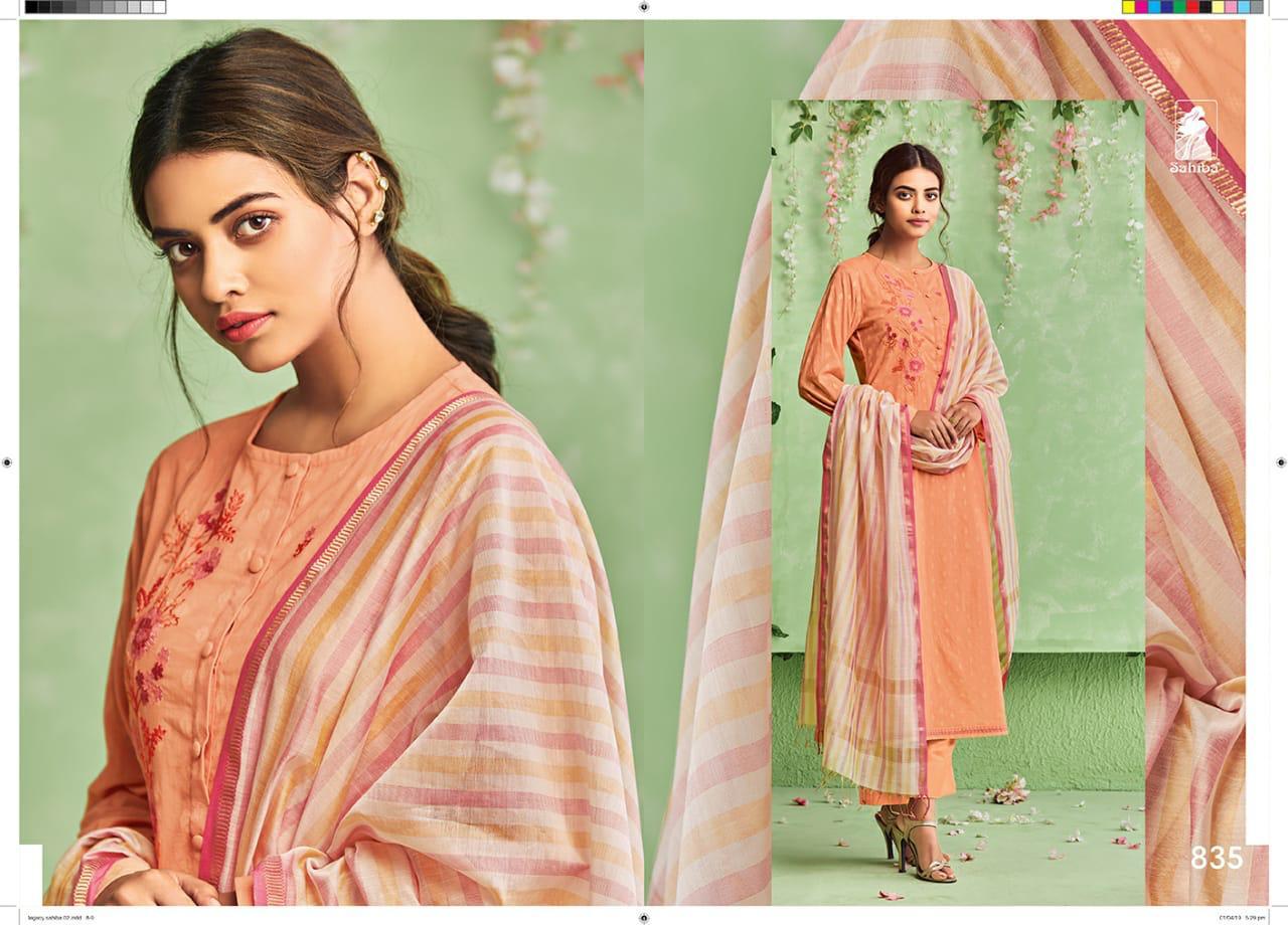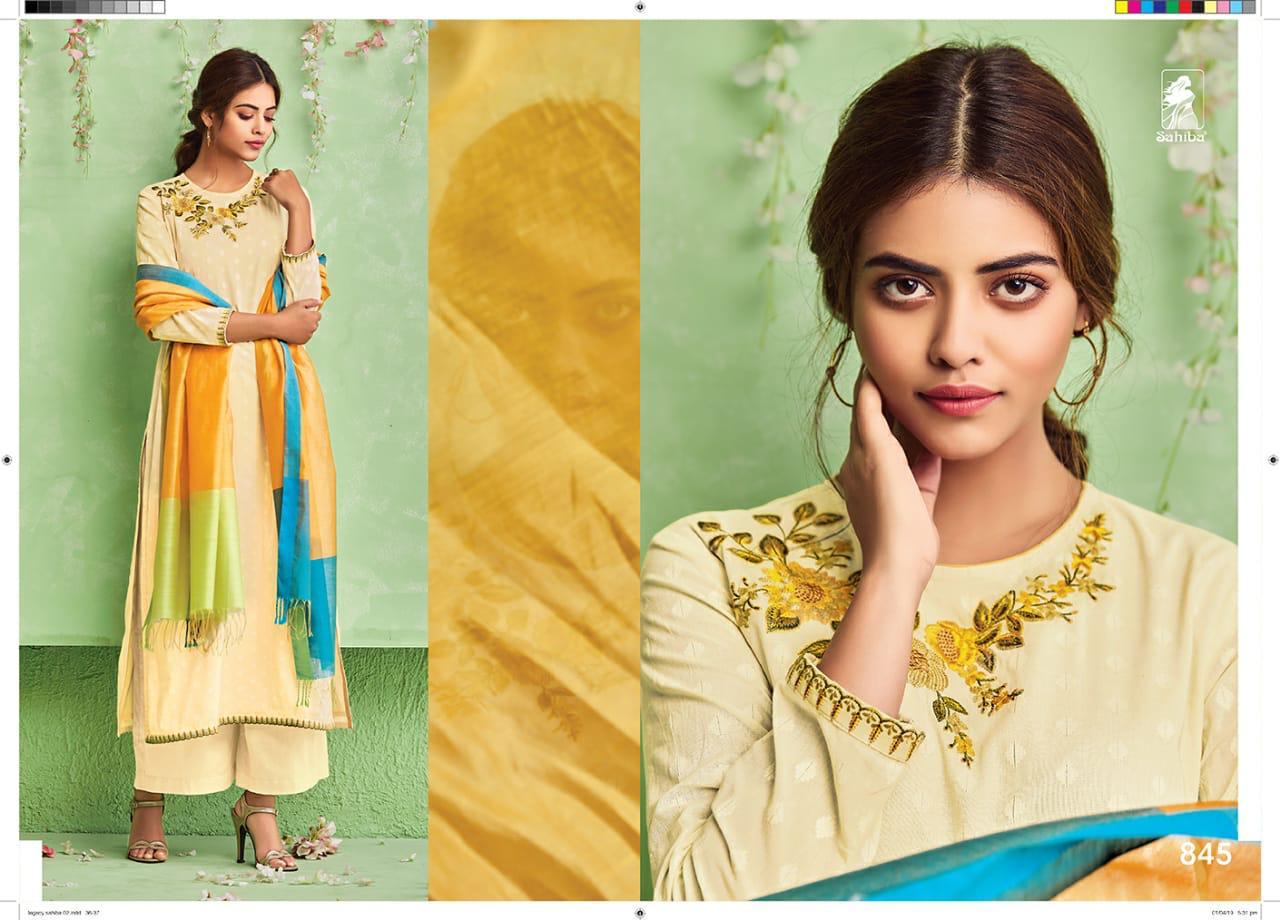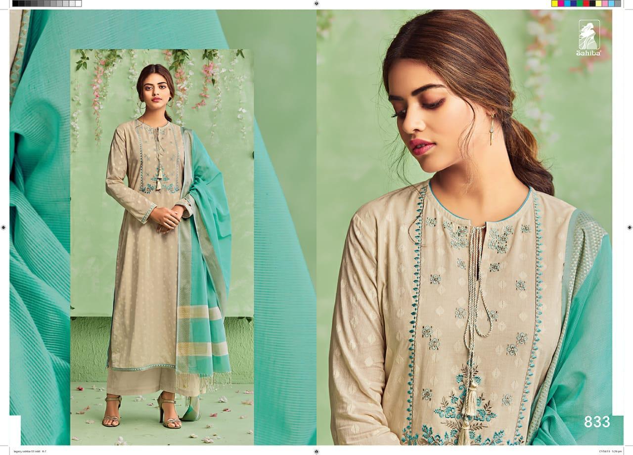 Buy Online Legacy By Sahiba Series 833 To 845 Cotton Jari Butta Embroidered Designer Party Wear Suits Wholesale Supplier Gujarat 12 Pcs of Full Catalogue at Wholesale Price. Looking for Legacy By Sahiba Series 833 To 845 Cotton Jari Butta Embroidered Designer Party Wear Suits Wholesale Supplier Gujarat Full Catalouge at Best Price? Buy Now Legacy By Sahiba Series 833 To 845 Cotton Jari Butta Embroidered Designer Party Wear Suits Wholesale Supplier Gujarat at Wholesale Rate of Rs 20340 with Total 12 Pcs from authroized dealer and supplier of SAHIBA Brand. Cost of Each piece is just only Rs 1695 which is very low and affordable price to resale the product in your retail store ,This is Surat based Wholesale Supplier & Dealer of SAHIBA Brand. Click on Brand name to Know more about SAHIBA Brand's products.Call or Whatsapp on 9898838984 for booking or enquiry