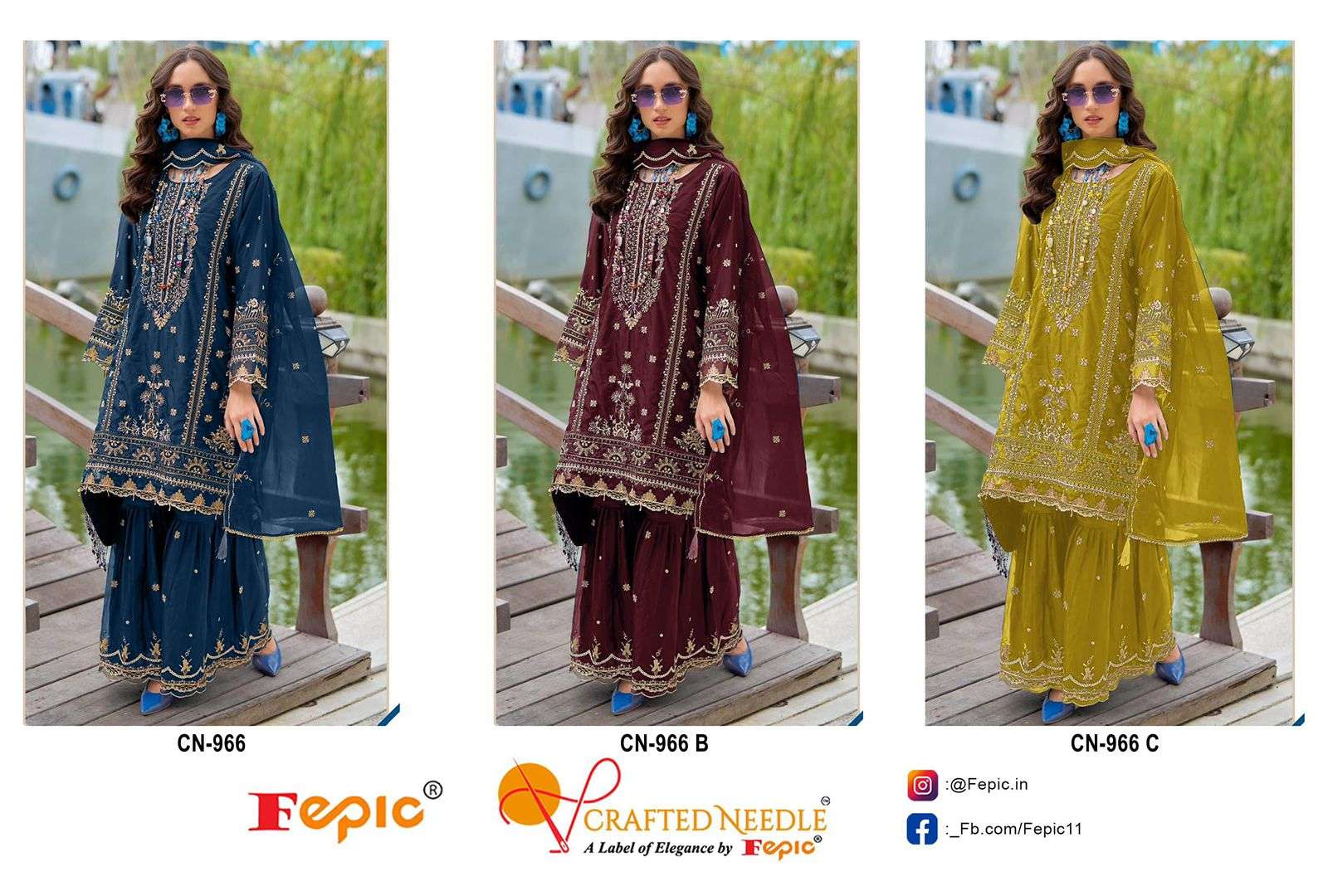Buy Online LEGANCE F CN 966 BY FEPIC ORGANZA suit collection manufacturer surat 3 Pcs of Full Catalogue at Wholesale Price. Looking for LEGANCE F CN 966 BY FEPIC ORGANZA suit collection manufacturer surat Full Catalouge at Best Price? Buy Now LEGANCE F CN 966 BY FEPIC ORGANZA suit collection manufacturer surat at Wholesale Rate of Rs 5493 with Total 3 Pcs from authroized dealer and supplier of FEPIC Brand. Cost of Each piece is just only Rs 1831 which is very low and affordable price to resale the product in your retail store ,This is Surat based Wholesale Supplier & Dealer of FEPIC Brand. Click on Brand name to Know more about FEPIC Brand's products.Call or Whatsapp on 9898838984 for booking or enquiry