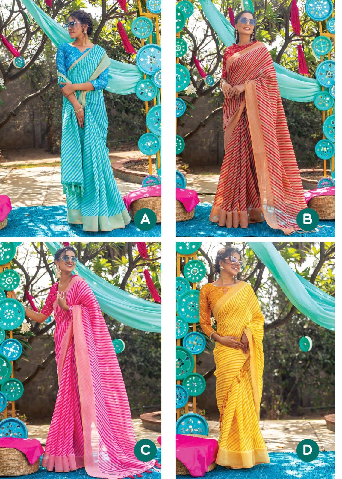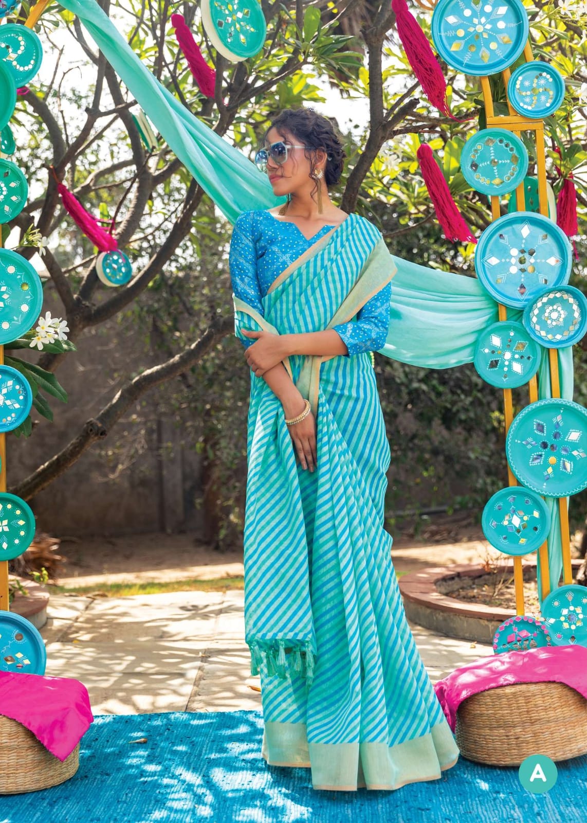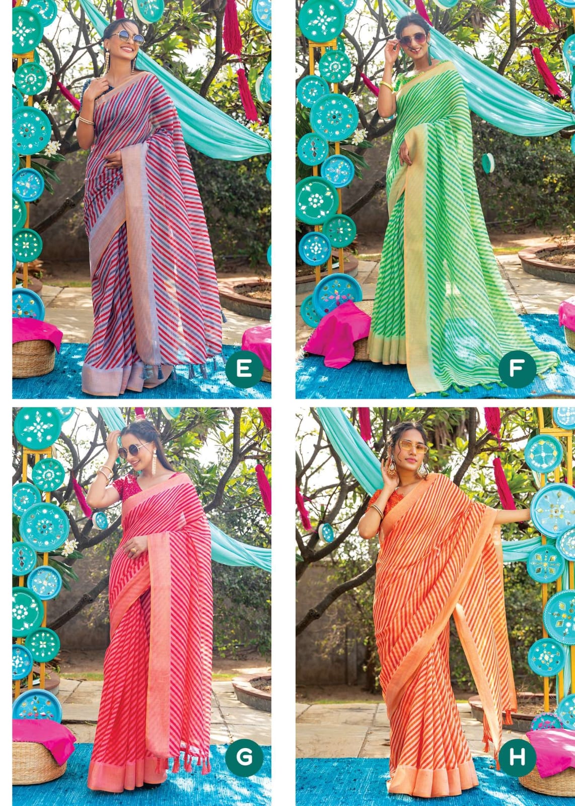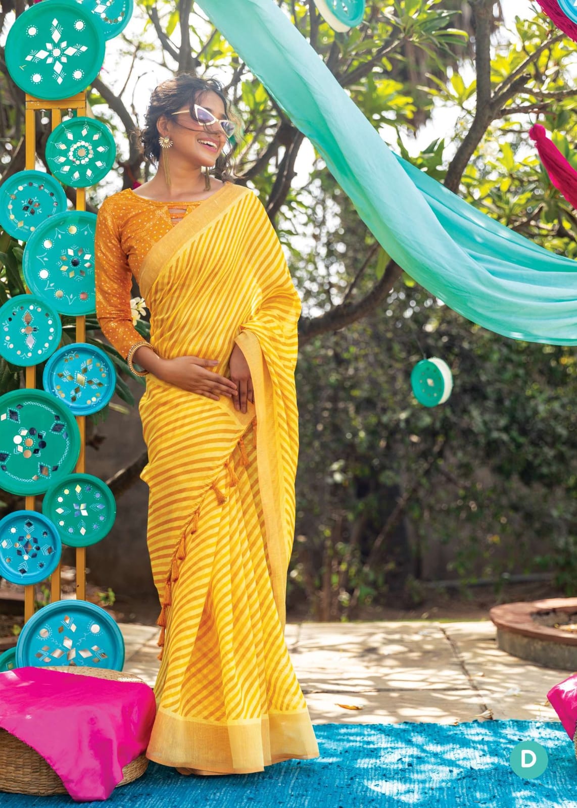 Lehariyaa linen Shangrila super hit lehariyaa saree with bhandej digital foil blouse on cotton zari weaving fabricÂ?!! 8 pc 595/- |