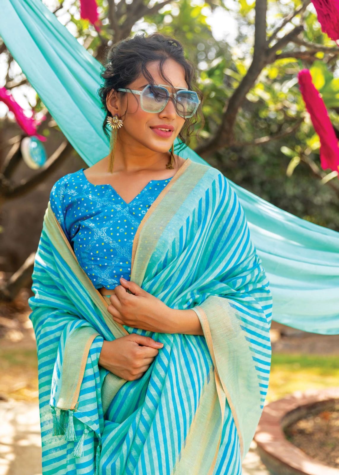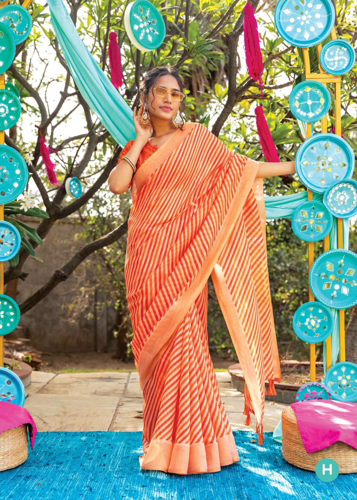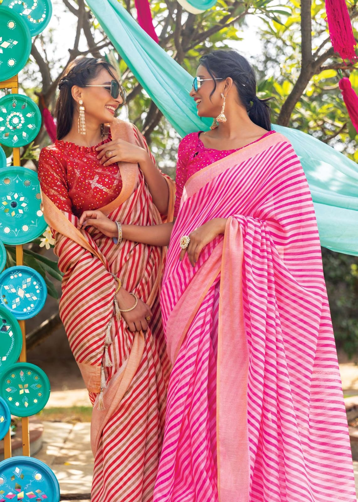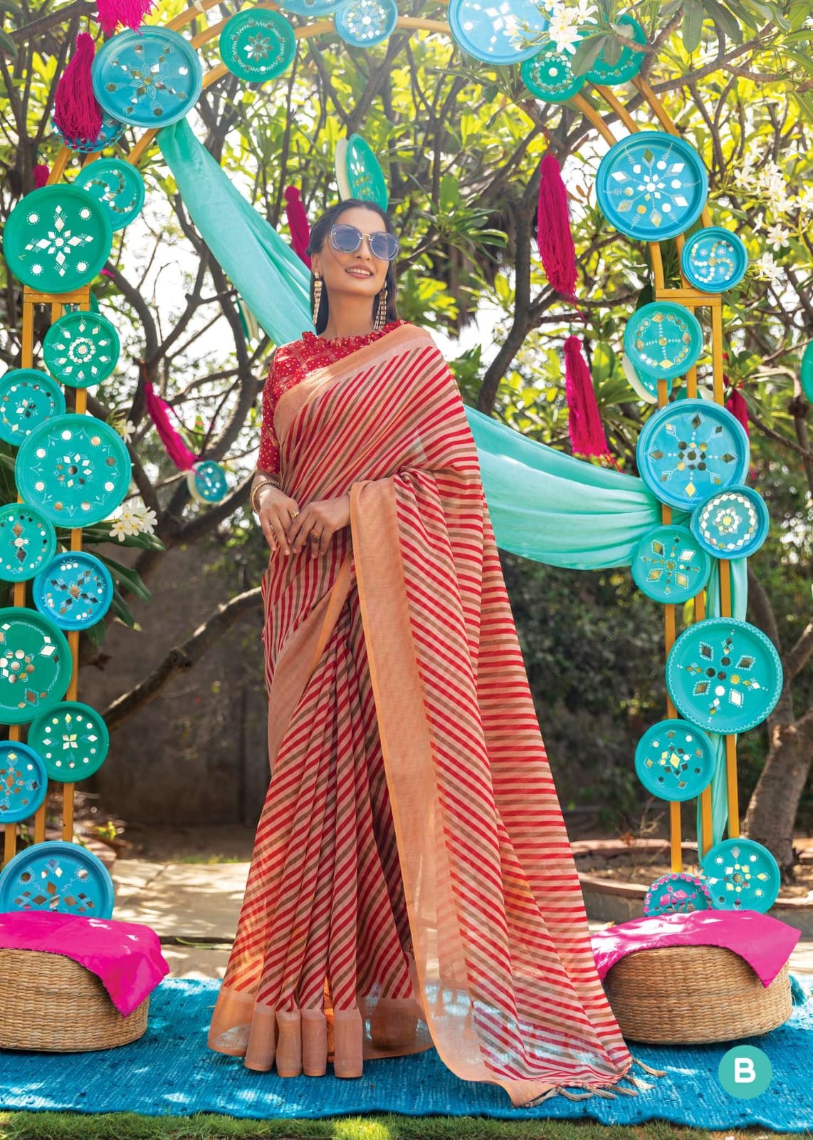 Lehariyaa linen Shangrila super hit lehariyaa saree with bhandej digital foil blouse on cotton zari weaving fabricÂ?!! 8 pc 595/- |