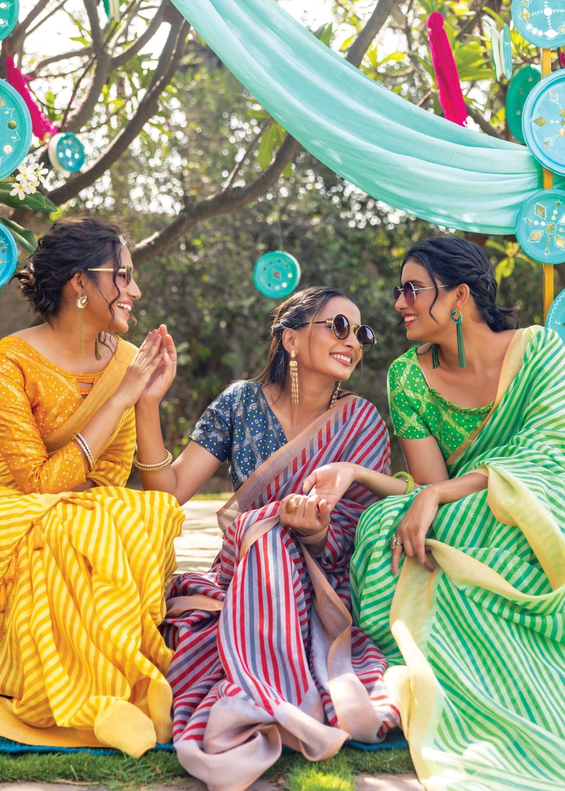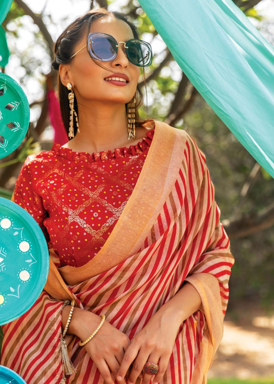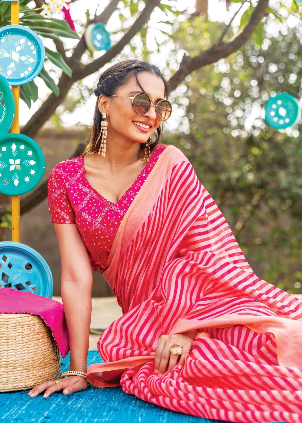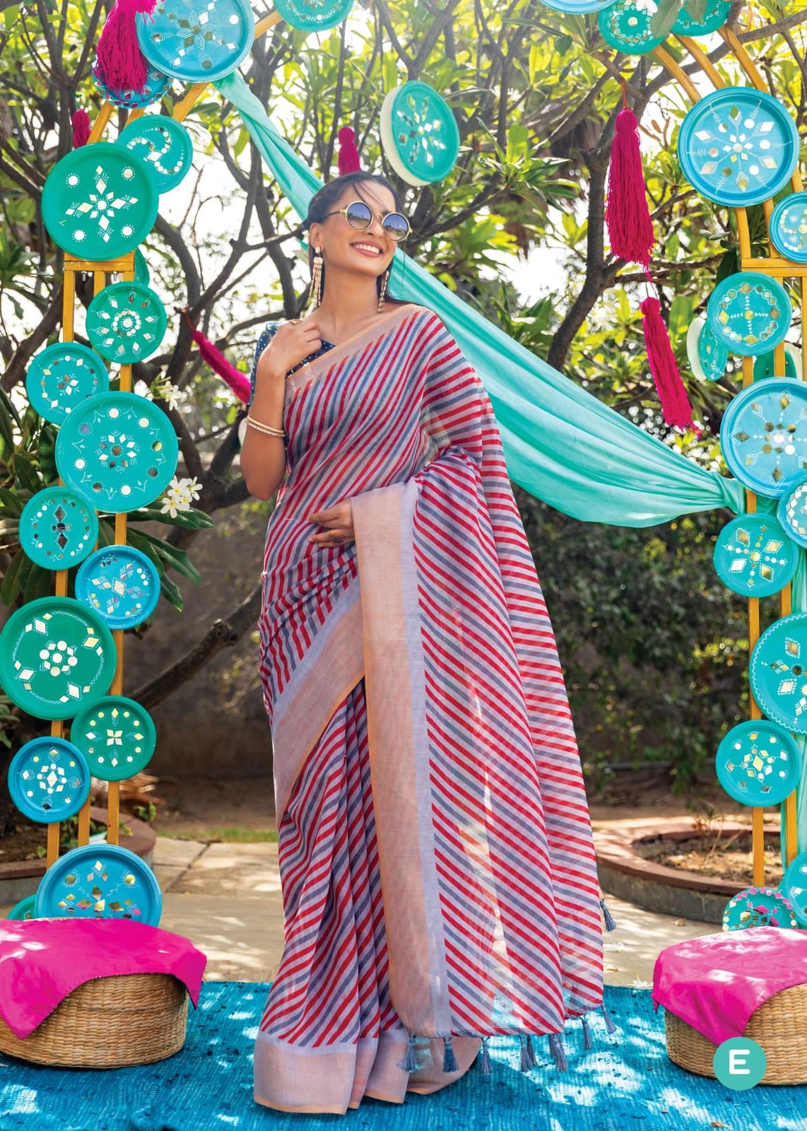 Lehariyaa linen Shangrila super hit lehariyaa saree with bhandej digital foil blouse on cotton zari weaving fabricÂ?!! 8 pc 595/- |