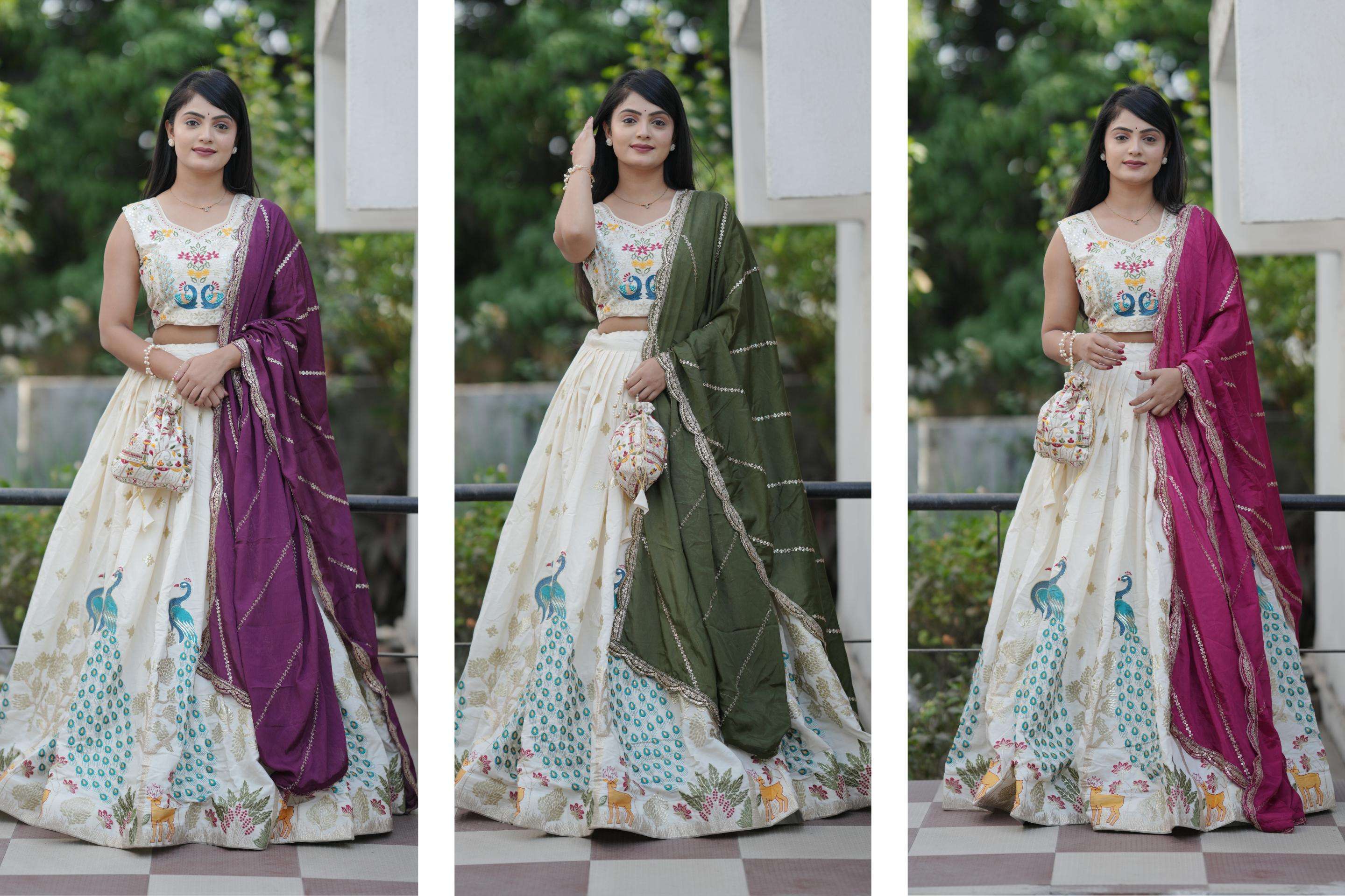 *Potli Purse* (Batwa) Fabric: Pure Cotton Work: Heavy Embroidery With Lace and Dori Closer *Package Contain* Lehenga, Blouse,Dupatta, Drawstring with Zip, Tassels, Batwa *Rate : 2299/-*🤩 *Weight: 1.310 kg* *Available Colors: 3 Colors Dupatta* *Premium Pure Cotton Quality*💯 Always*✅ *Book Here*👜 |
