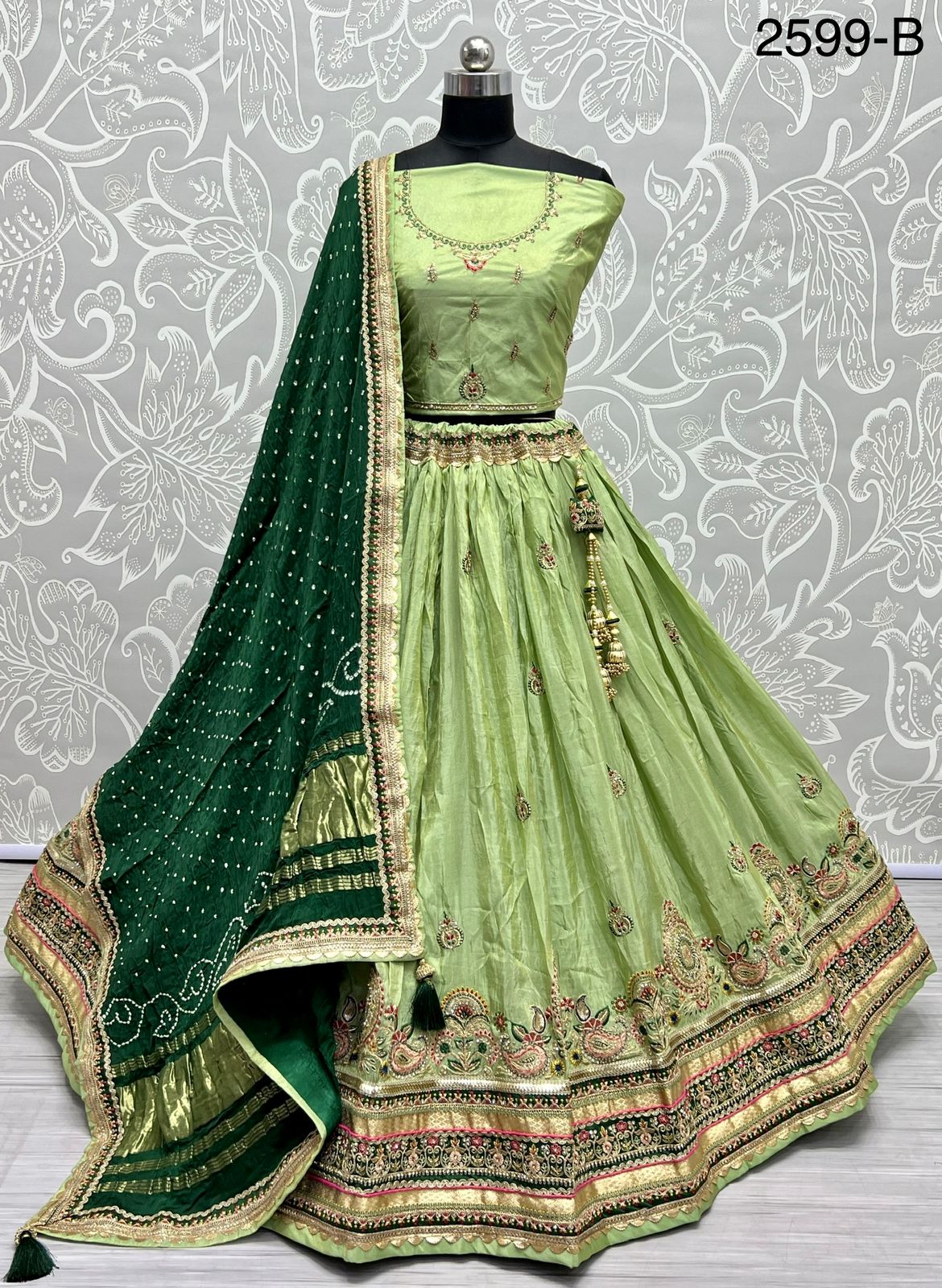 Lehenga Design 2599 Pure Gaji Silk Bandhani Dupatta Crafted Wedding Wear Collection Manufacturer Surat