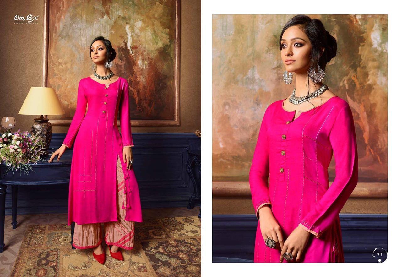 Buy Online Lekha By Omtex 31 Series Fancy Reyon Kurti And Plazzo Collection Wholesale Dealer Surat 6 Pcs of Full Catalogue at Wholesale Price. Looking for Lekha By Omtex 31 Series Fancy Reyon Kurti And Plazzo Collection Wholesale Dealer Surat Full Catalouge at Best Price? Buy Now Lekha By Omtex 31 Series Fancy Reyon Kurti And Plazzo Collection Wholesale Dealer Surat at Wholesale Rate of Rs 7050 with Total 6 Pcs from authroized dealer and supplier of OM TEX Brand. Cost of Each piece is just only Rs 1175 which is very low and affordable price to resale the product in your retail store ,This is Surat based Wholesale Supplier & Dealer of OM TEX Brand. Click on Brand name to Know more about OM TEX Brand's products.Call or Whatsapp on 9898838984 for booking or enquiry