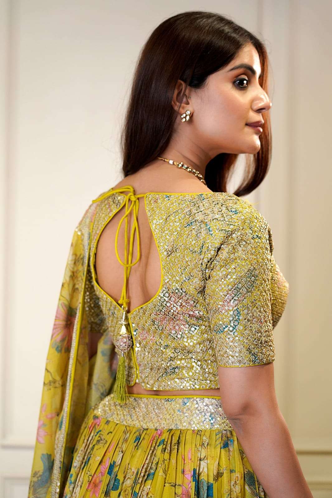 LEMON YELLOW SKU DRS48 ORGANZA lehenga collection manufacturer surat