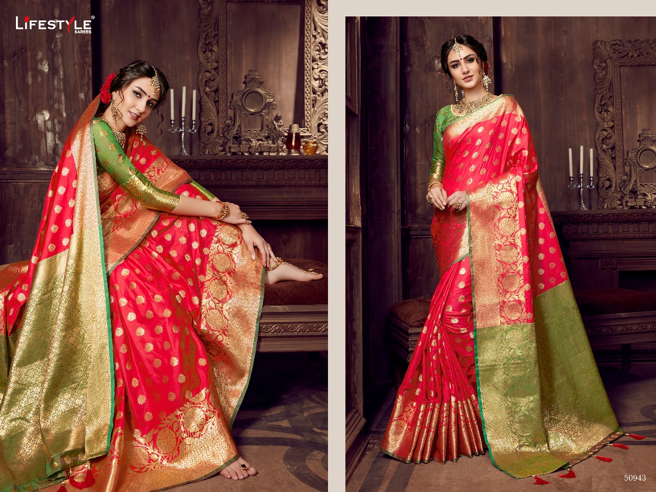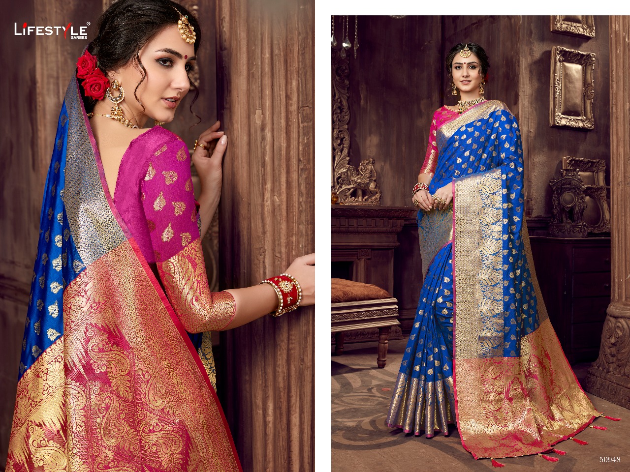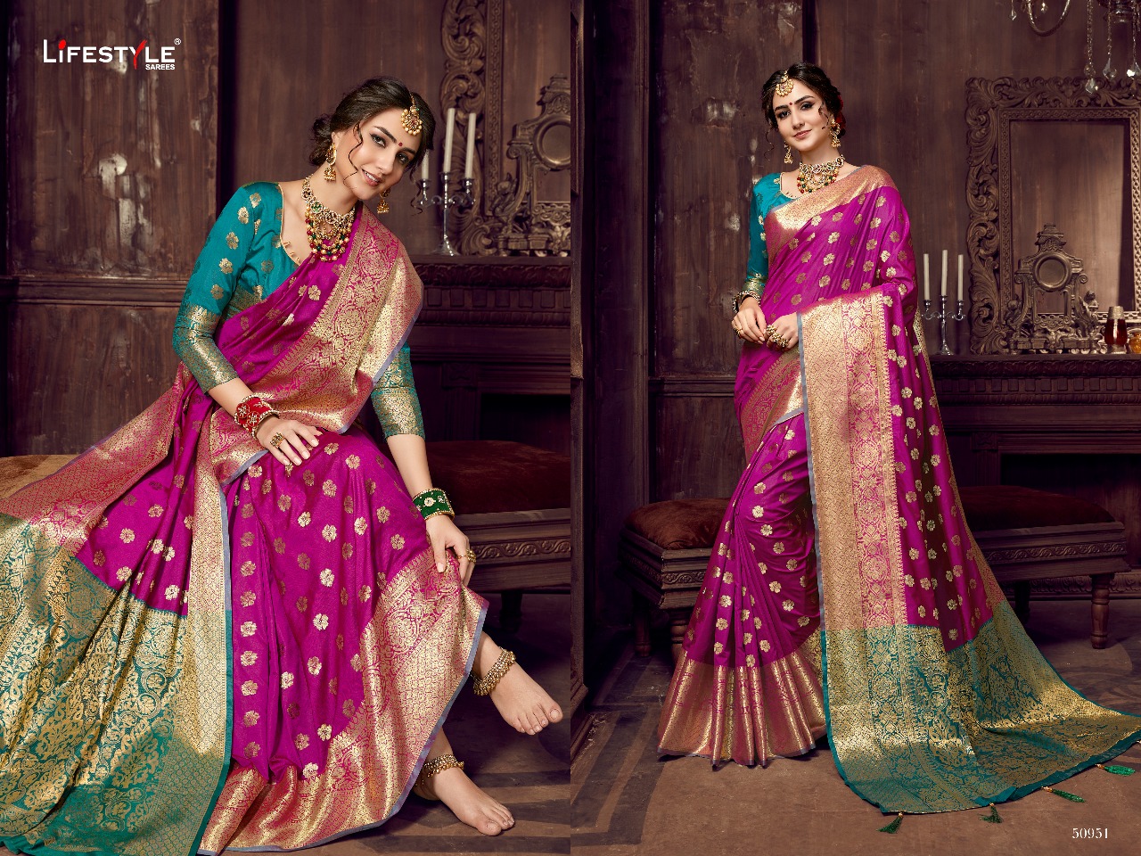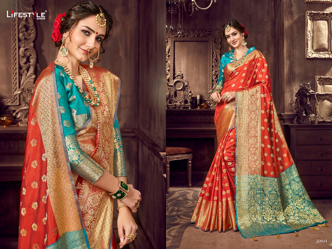 Buy Online Lifestyle Banarasi Silk 50941 Series Party Wear Saree Dealer 12 Pcs of Full Catalogue at Wholesale Price. Looking for Lifestyle Banarasi Silk 50941 Series Party Wear Saree Dealer Full Catalouge at Best Price? Buy Now Lifestyle Banarasi Silk 50941 Series Party Wear Saree Dealer at Wholesale Rate of Rs 12600 with Total 12 Pcs from authroized dealer and supplier of LIFESTYLE Brand. Cost of Each piece is just only Rs 1050 which is very low and affordable price to resale the product in your retail store ,This is Surat based Wholesale Supplier & Dealer of LIFESTYLE Brand. Click on Brand name to Know more about LIFESTYLE Brand's products.Call or Whatsapp on 9898838984 for booking or enquiry