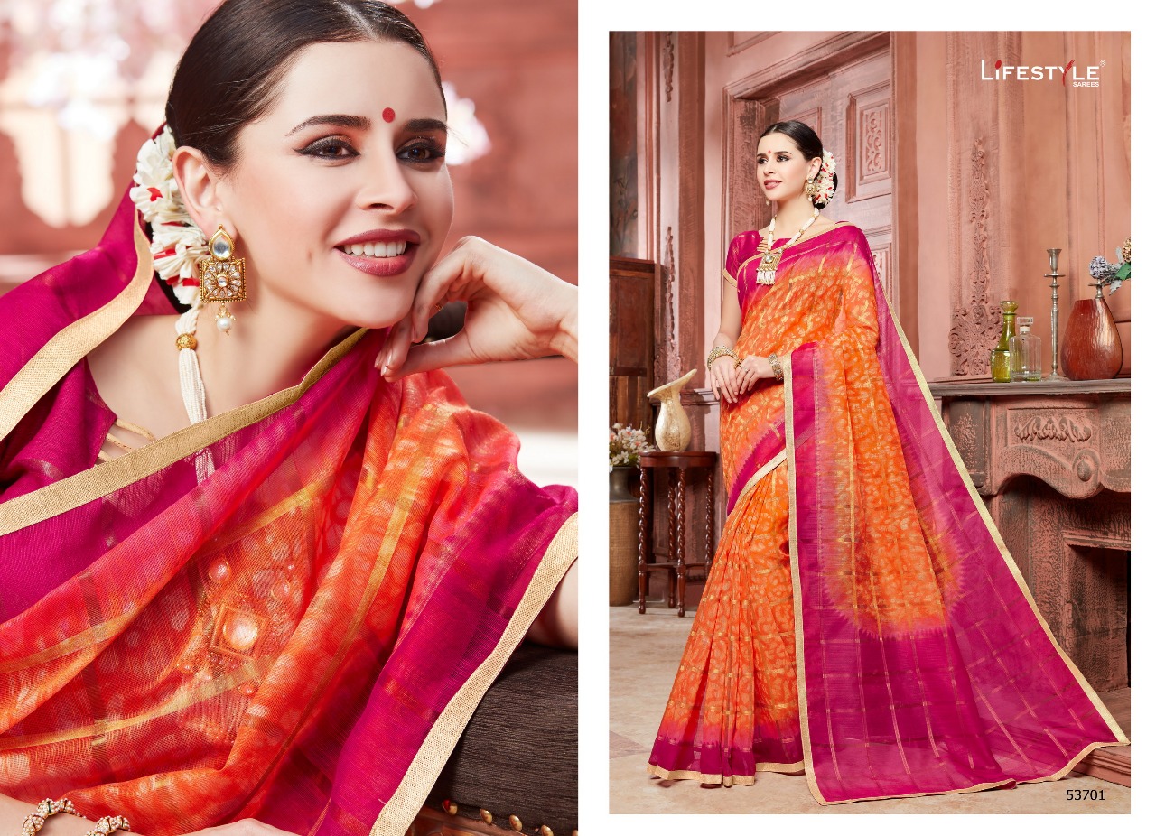 Buy Online Lifestyle Chandrika 53701 Series Cotton Print Saree Dealer 6 Pcs of Full Catalogue at Wholesale Price. Looking for Lifestyle Chandrika 53701 Series Cotton Print Saree Dealer Full Catalouge at Best Price? Buy Now Lifestyle Chandrika 53701 Series Cotton Print Saree Dealer at Wholesale Rate of Rs 4890 with Total 6 Pcs from authroized dealer and supplier of LIFESTYLE Brand. Cost of Each piece is just only Rs 815 which is very low and affordable price to resale the product in your retail store ,This is Surat based Wholesale Supplier & Dealer of LIFESTYLE Brand. Click on Brand name to Know more about LIFESTYLE Brand's products.Call or Whatsapp on 9898838984 for booking or enquiry