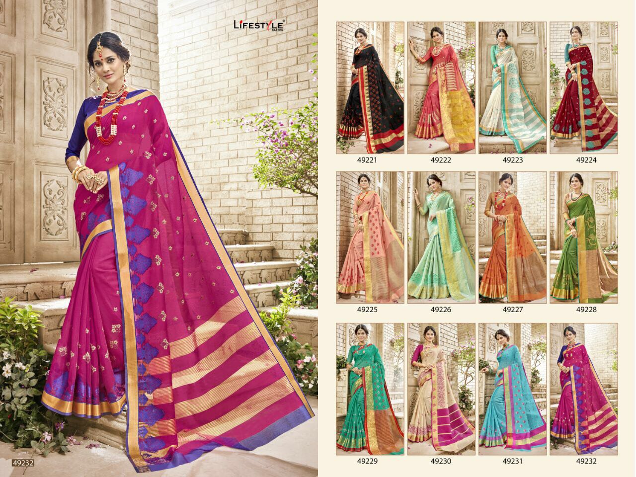 Buy Online Lifestyle Hansika Vol 2 49222 To 49231 Series Silk Saree 12 Pcs of Full Catalogue at Wholesale Price. Looking for Lifestyle Hansika Vol 2 49222 To 49231 Series Silk Saree Full Catalouge at Best Price? Buy Now Lifestyle Hansika Vol 2 49222 To 49231 Series Silk Saree at Wholesale Rate of Rs 9960 with Total 12 Pcs from authroized dealer and supplier of LIFESTYLE Brand. Cost of Each piece is just only Rs 830 which is very low and affordable price to resale the product in your retail store ,This is Surat based Wholesale Supplier & Dealer of LIFESTYLE Brand. Click on Brand name to Know more about LIFESTYLE Brand's products.Call or Whatsapp on 9898838984 for booking or enquiry
