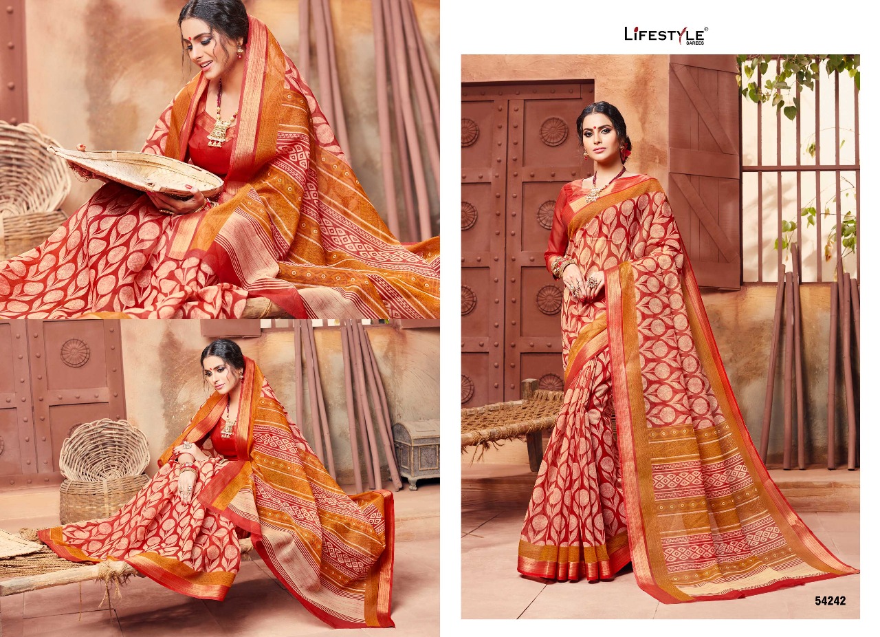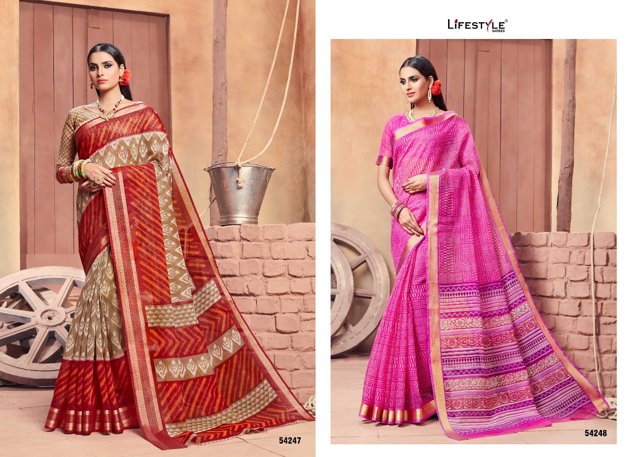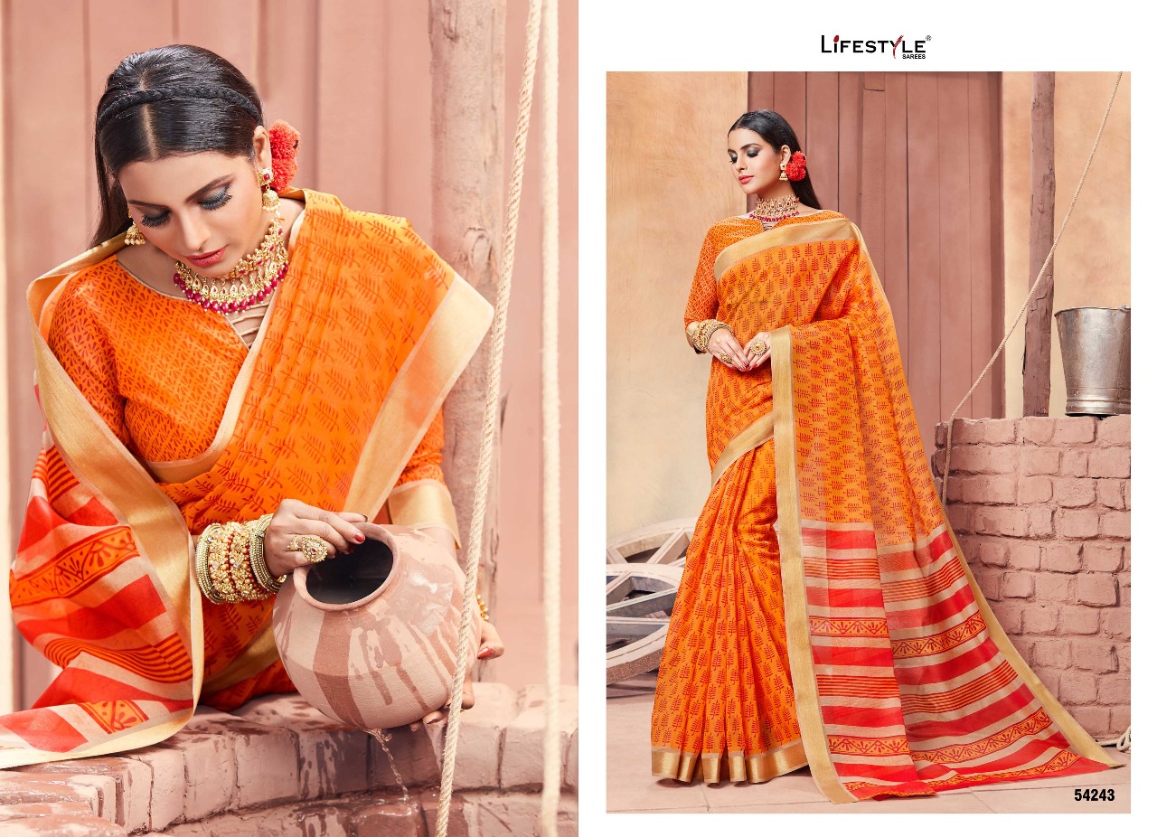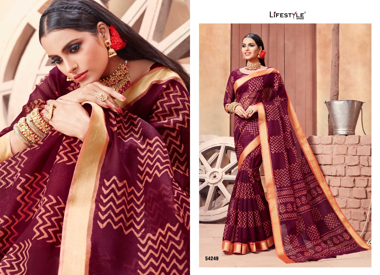 Buy Online Lifestyle Jari Cotton Vol 7 54241 Series Cotton Printed Saree Catlog Wholesale Dealer Surat 12 Pcs of Full Catalogue at Wholesale Price. Looking for Lifestyle Jari Cotton Vol 7 54241 Series Cotton Printed Saree Catlog Wholesale Dealer Surat Full Catalouge at Best Price? Buy Now Lifestyle Jari Cotton Vol 7 54241 Series Cotton Printed Saree Catlog Wholesale Dealer Surat at Wholesale Rate of Rs 6960 with Total 12 Pcs from authroized dealer and supplier of LIFESTYLE Brand. Cost of Each piece is just only Rs 580 which is very low and affordable price to resale the product in your retail store ,This is Surat based Wholesale Supplier & Dealer of LIFESTYLE Brand. Click on Brand name to Know more about LIFESTYLE Brand's products.Call or Whatsapp on 9898838984 for booking or enquiry