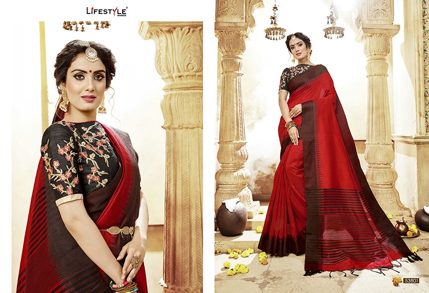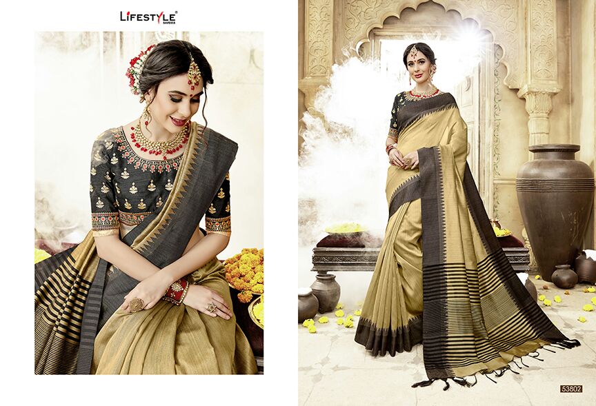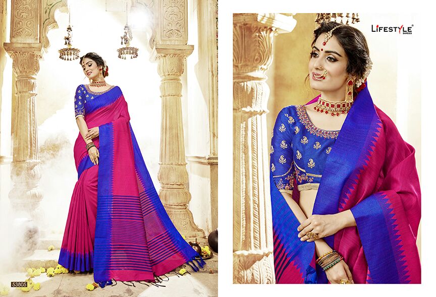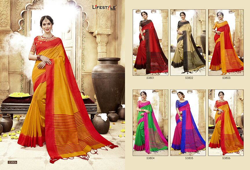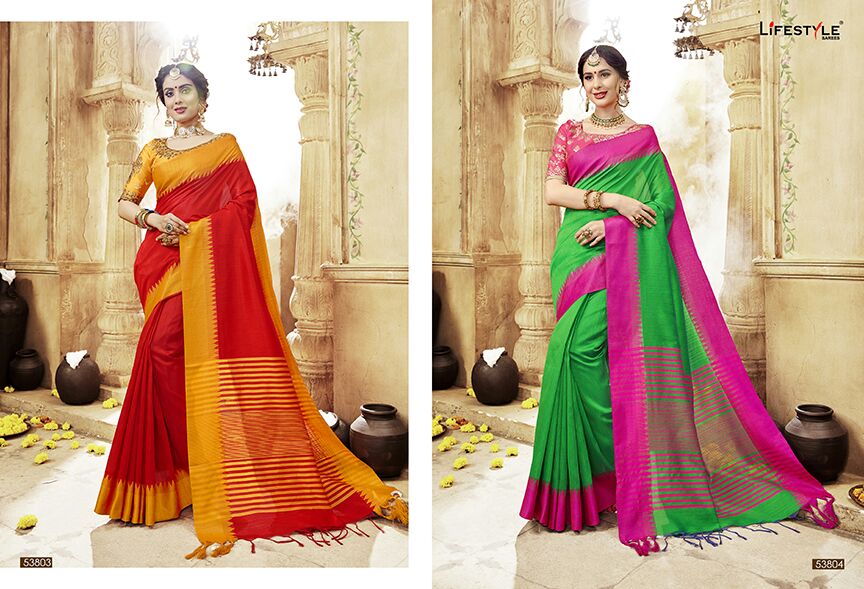 Buy Online Lifestyle Sangrila 53801 Series Fancy Weaving Silk Sarees 6 Pcs of Full Catalogue at Wholesale Price. Looking for Lifestyle Sangrila 53801 Series Fancy Weaving Silk Sarees Full Catalouge at Best Price? Buy Now Lifestyle Sangrila 53801 Series Fancy Weaving Silk Sarees at Wholesale Rate of Rs 4260 with Total 6 Pcs from authroized dealer and supplier of LIFESTYLE Brand. Cost of Each piece is just only Rs 710 which is very low and affordable price to resale the product in your retail store ,This is Surat based Wholesale Supplier & Dealer of LIFESTYLE Brand. Click on Brand name to Know more about LIFESTYLE Brand's products.Call or Whatsapp on 9898838984 for booking or enquiry