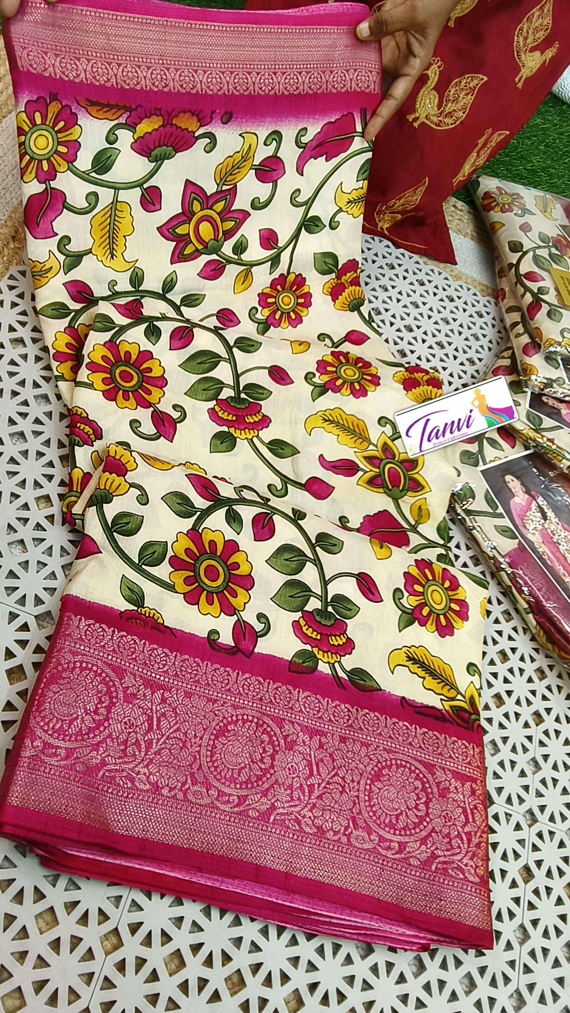 Introducing our Budget Friendly Series, perfect for everyday elegance at an unbeatable price. These lightweight Dola sarees feature a beautiful all-over floral theme that looks fresh and graceful. Enhanced with contrast zari borders on both sides, the saree is finished with a rich floral pallu with butties and a matching contrast blouse piece. Easy to drape and comfortable, it’s ideal for daily wear, office use, and casual functions. ✨ Fabric: Lightweight Dola 😍 Stylish, elegant & truly budget friendly!