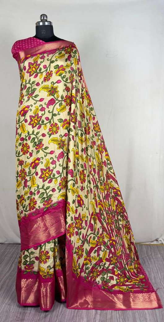 Lightweight Dola Floral Saree with Contrast Zari Border