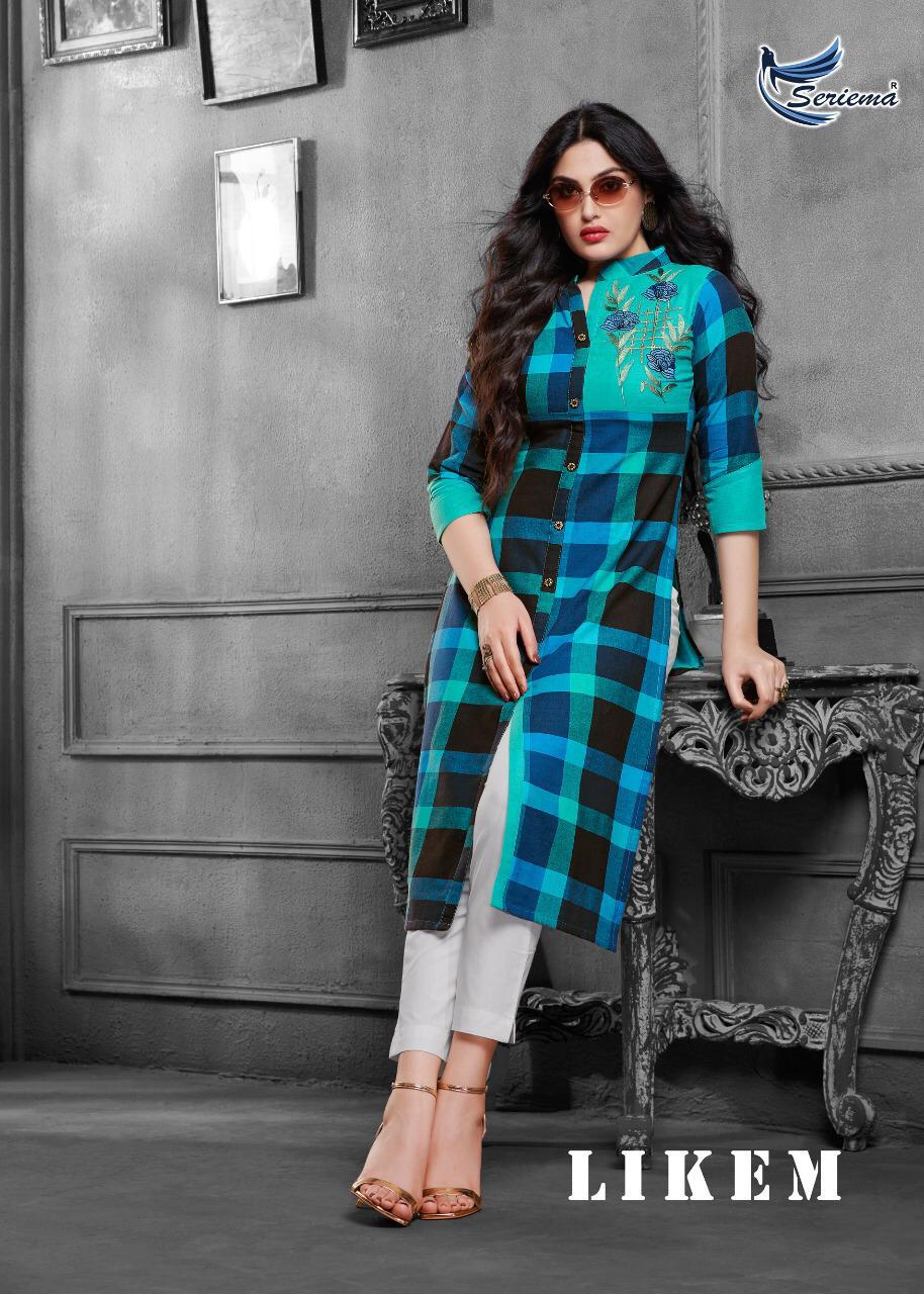 Buy Online Likem By Seriema Cotton Kurtis Wholesale Supplier And Dealer Gujarat 8 Pcs of Full Catalogue at Wholesale Price. Looking for Likem By Seriema Cotton Kurtis Wholesale Supplier And Dealer Gujarat Full Catalouge at Best Price? Buy Now Likem By Seriema Cotton Kurtis Wholesale Supplier And Dealer Gujarat at Wholesale Rate of Rs 4760 with Total 8 Pcs from authroized dealer and supplier of Seriema Brand. Cost of Each piece is just only Rs 595 which is very low and affordable price to resale the product in your retail store ,This is Surat based Wholesale Supplier & Dealer of Seriema Brand. Click on Brand name to Know more about Seriema Brand's products.Call or Whatsapp on 9898838984 for booking or enquiry