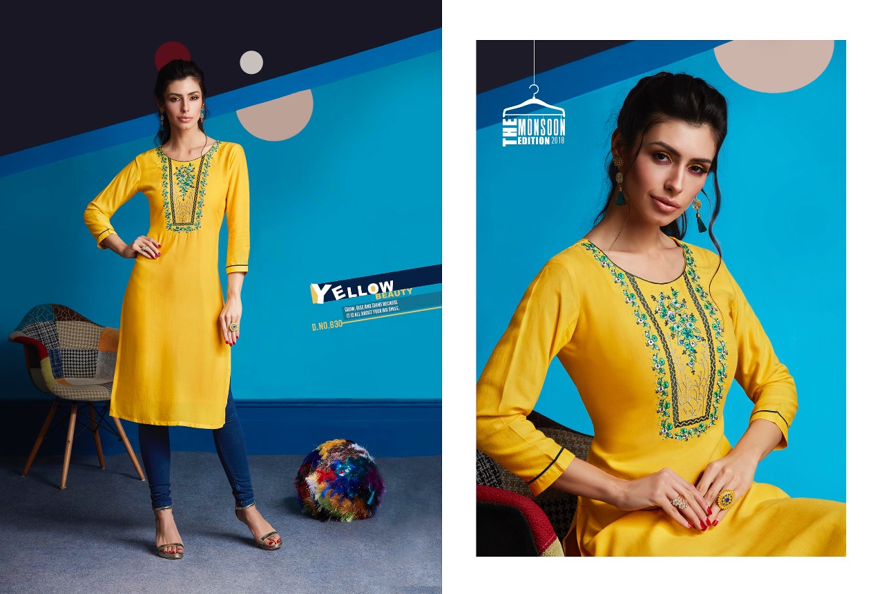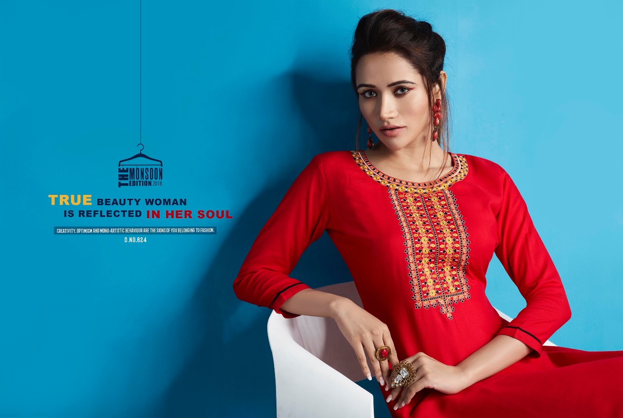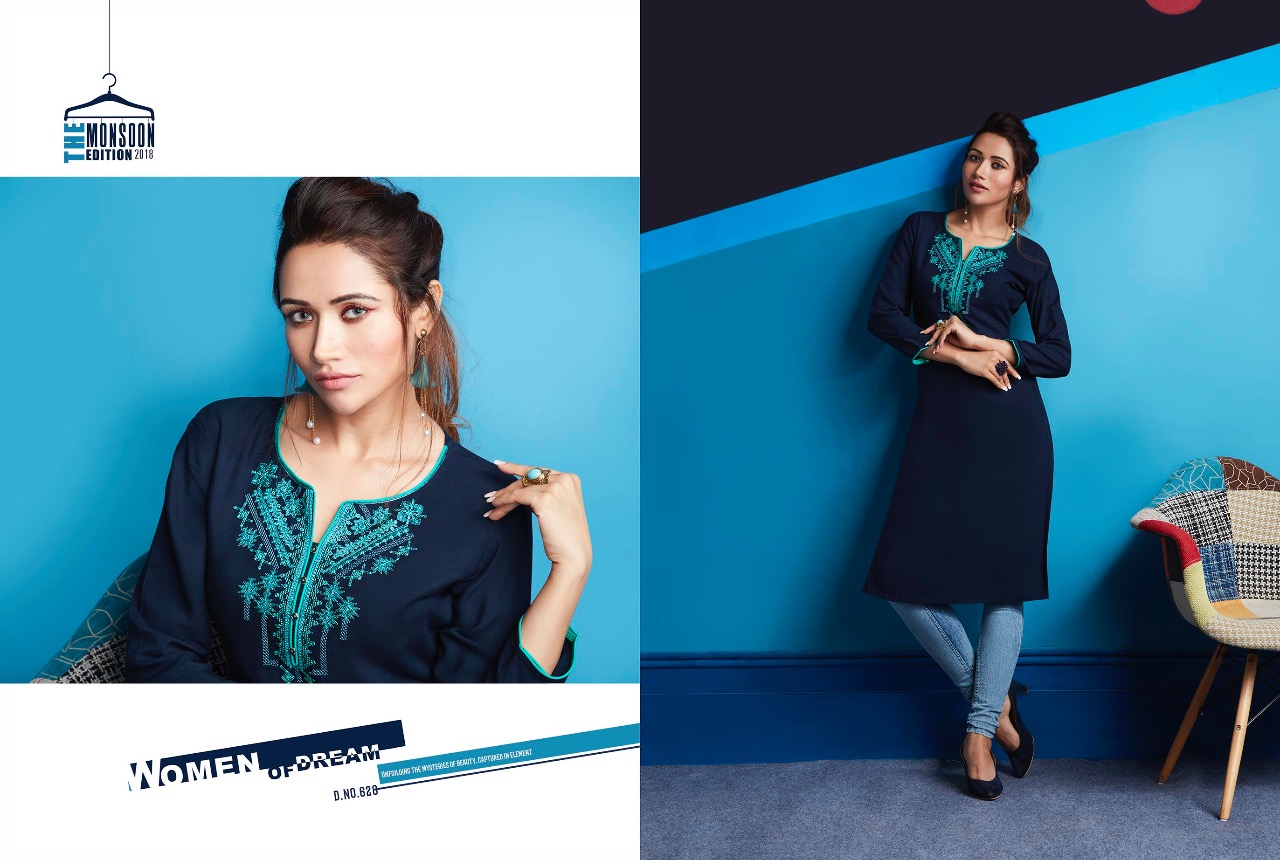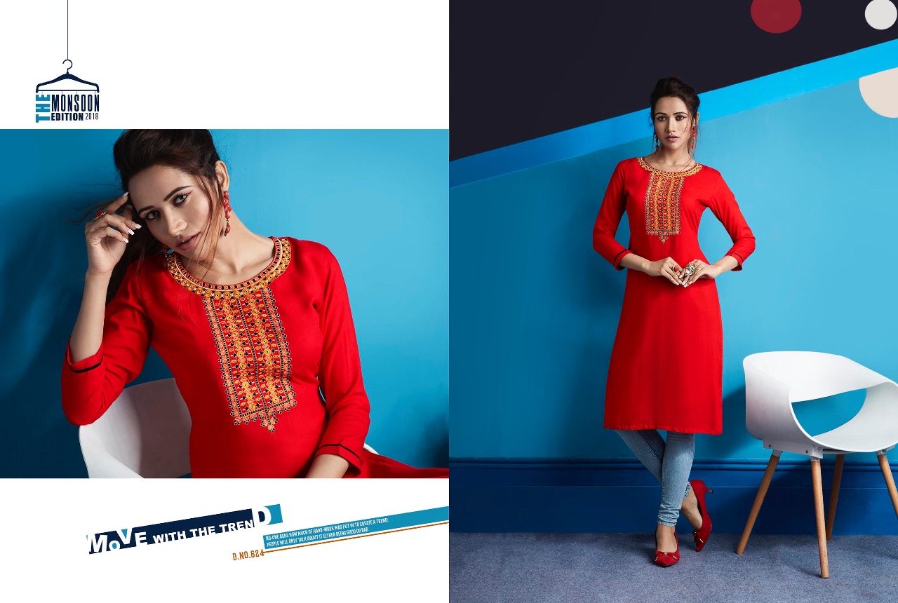 ?Kajree Fashion has launch New catalog "Lily Vol - 10" ?Catalog - Lily Vol - 10 ?Series - 621-632 ?Fabric :- Rayon Embroidered Work Kurtis ?Size :- M-38, L-40, XL-42, XXL-44 ?Total Design :- 12 ?Dispatching 5 to 6 days later ?Booking started from now...? Book your order soon....? Rate -350 per pcs . Set to set. GST 5 Percent Extra. |