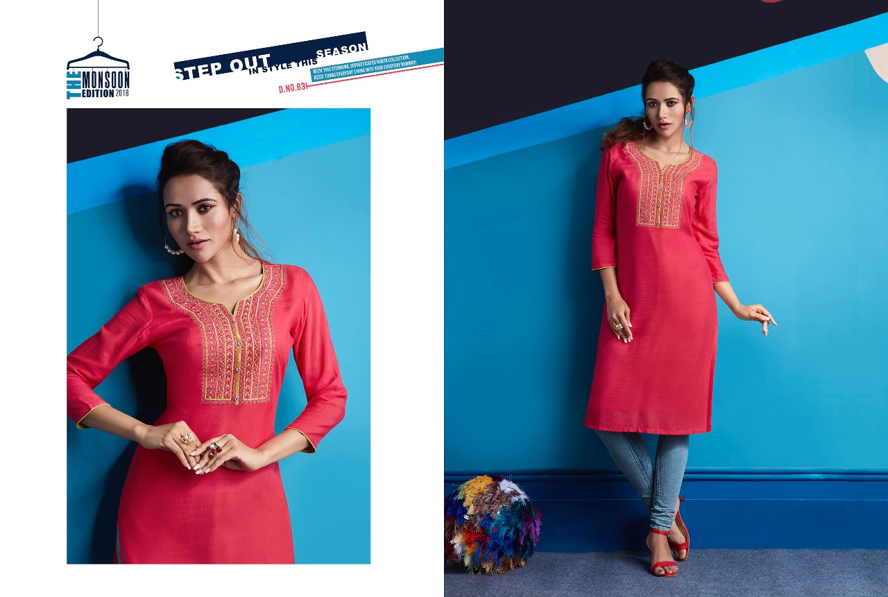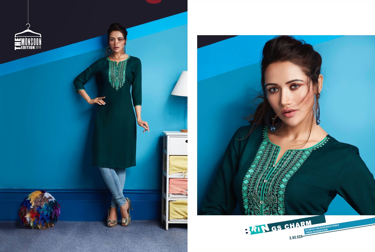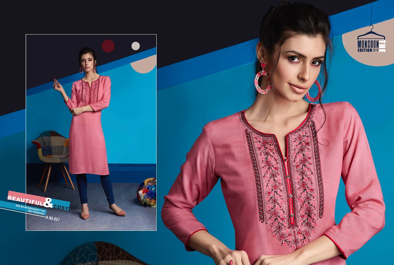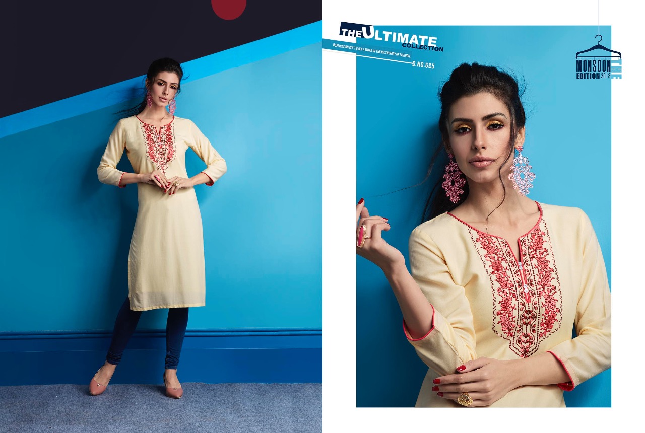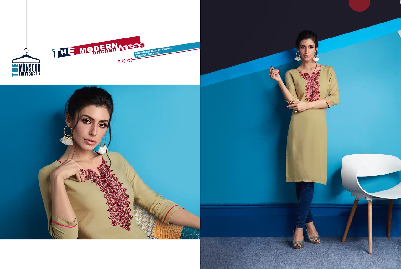 ?Kajree Fashion has launch New catalog "Lily Vol - 10" ?Catalog - Lily Vol - 10 ?Series - 621-632 ?Fabric :- Rayon Embroidered Work Kurtis ?Size :- M-38, L-40, XL-42, XXL-44 ?Total Design :- 12 ?Dispatching 5 to 6 days later ?Booking started from now...? Book your order soon....? Rate -350 per pcs . Set to set. GST 5 Percent Extra. |