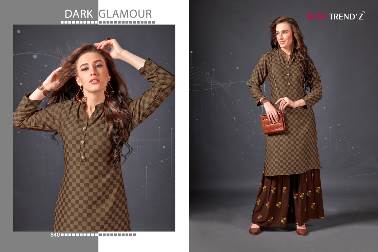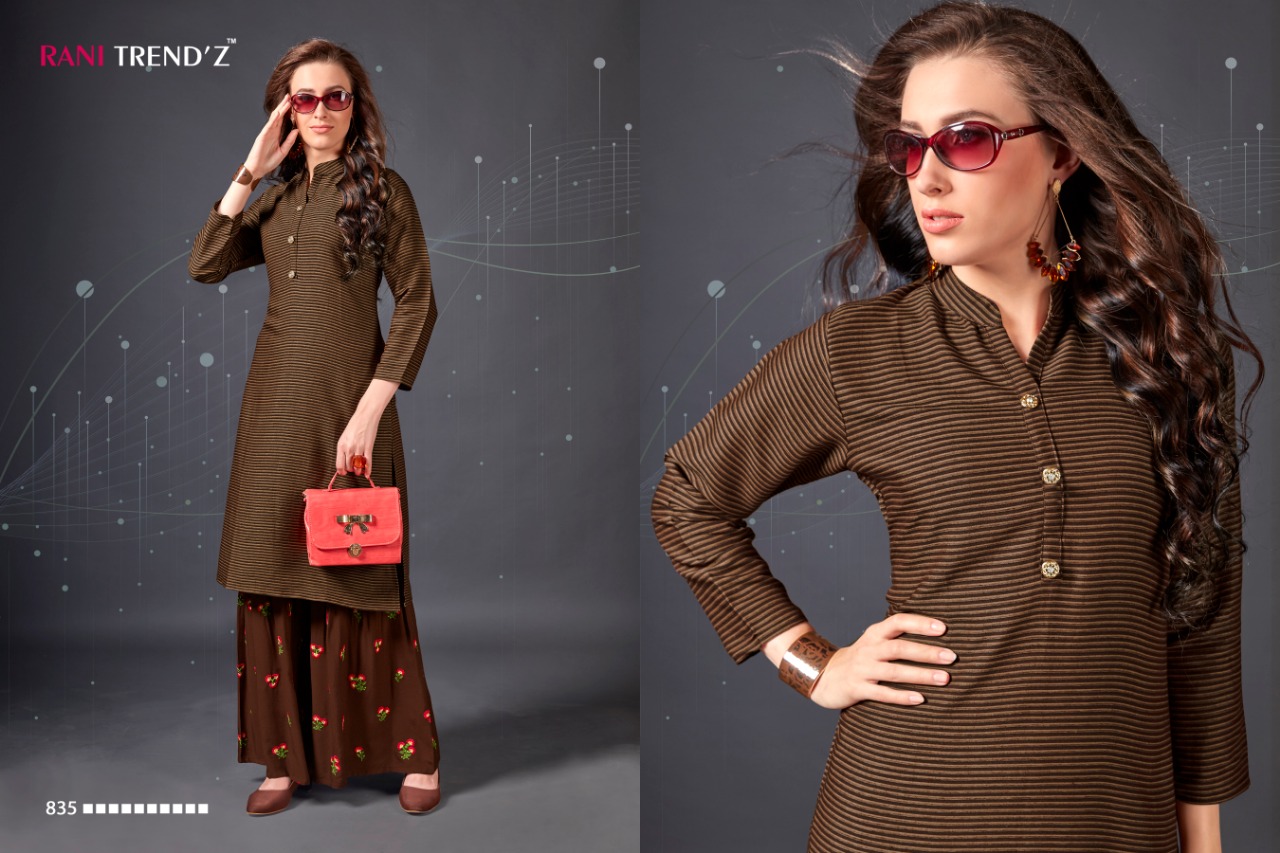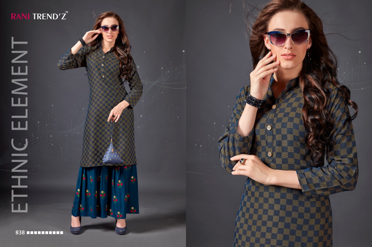 Buy Online Lime Lite Vol 4 By Rani Trendz 834 Series Fancy Reyon Jeckart Kurti With Sarara Wholesaler Surat 7 Pcs of Full Catalogue at Wholesale Price. Looking for Lime Lite Vol 4 By Rani Trendz 834 Series Fancy Reyon Jeckart Kurti With Sarara Wholesaler Surat Full Catalouge at Best Price? Buy Now Lime Lite Vol 4 By Rani Trendz 834 Series Fancy Reyon Jeckart Kurti With Sarara Wholesaler Surat at Wholesale Rate of Rs 5257 with Total 7 Pcs from authroized dealer and supplier of RANI TRENDZ Brand. Cost of Each piece is just only Rs 751 which is very low and affordable price to resale the product in your retail store ,This is Surat based Wholesale Supplier & Dealer of RANI TRENDZ Brand. Click on Brand name to Know more about RANI TRENDZ Brand's products.Call or Whatsapp on 9898838984 for booking or enquiry
