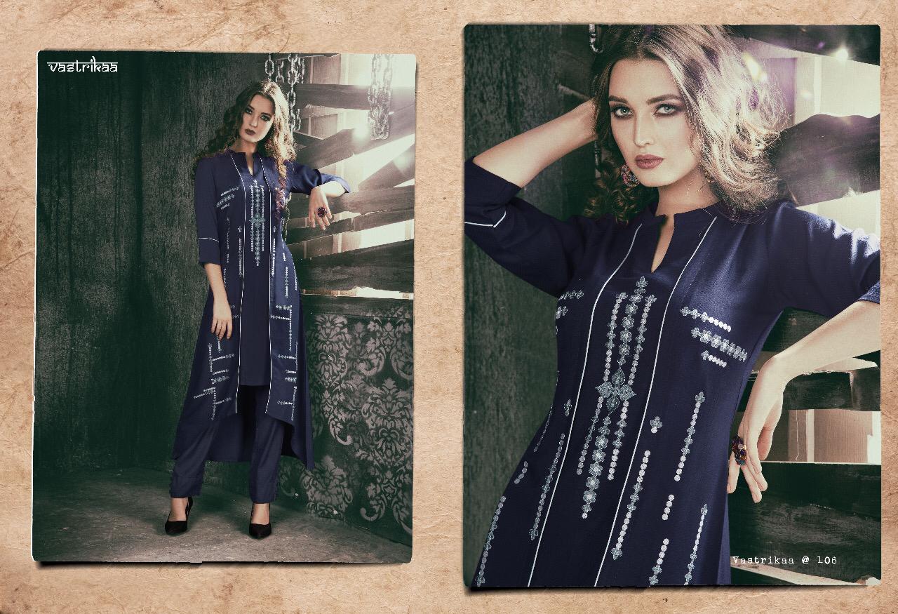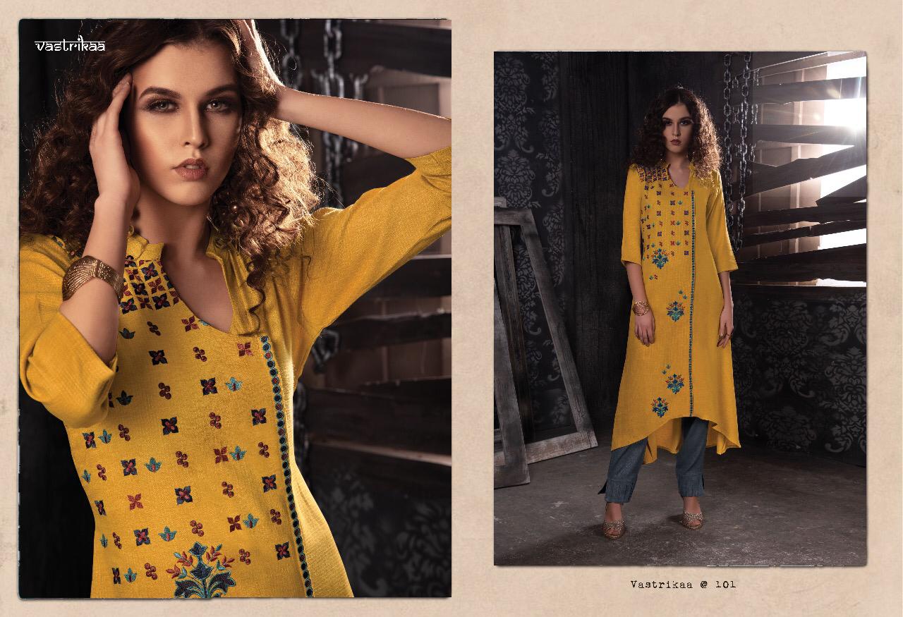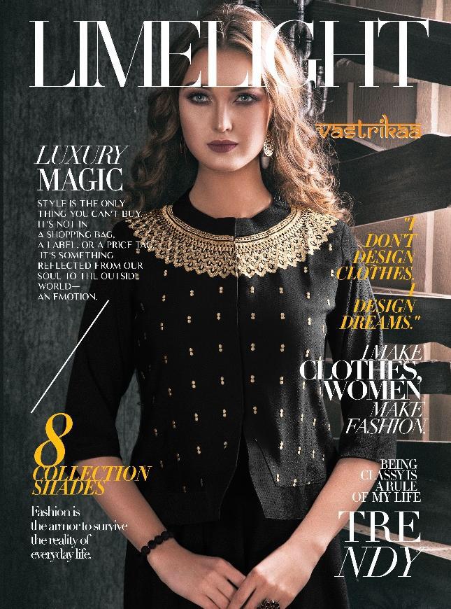 Buy Online Limelight By Vastrikaa 101 Series Fancy Kurti Catlog Wholesaler Surat 8 Pcs of Full Catalogue at Wholesale Price. Looking for Limelight By Vastrikaa 101 Series Fancy Kurti Catlog Wholesaler Surat Full Catalouge at Best Price? Buy Now Limelight By Vastrikaa 101 Series Fancy Kurti Catlog Wholesaler Surat at Wholesale Rate of Rs 9000 with Total 8 Pcs from authroized dealer and supplier of VASTRIKAA Brand. Cost of Each piece is just only Rs 1125 which is very low and affordable price to resale the product in your retail store ,This is Surat based Wholesale Supplier & Dealer of VASTRIKAA Brand. Click on Brand name to Know more about VASTRIKAA Brand's products.Call or Whatsapp on 9898838984 for booking or enquiry