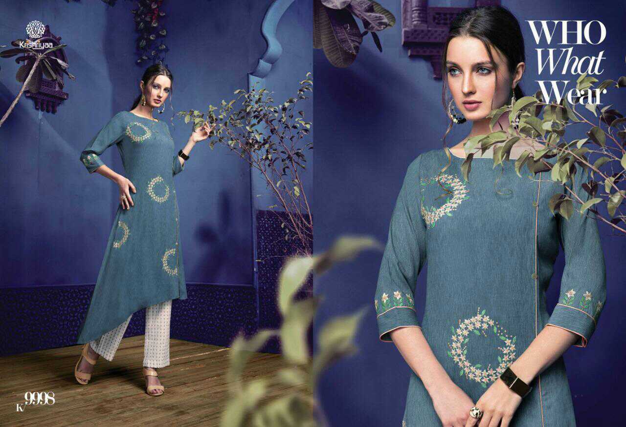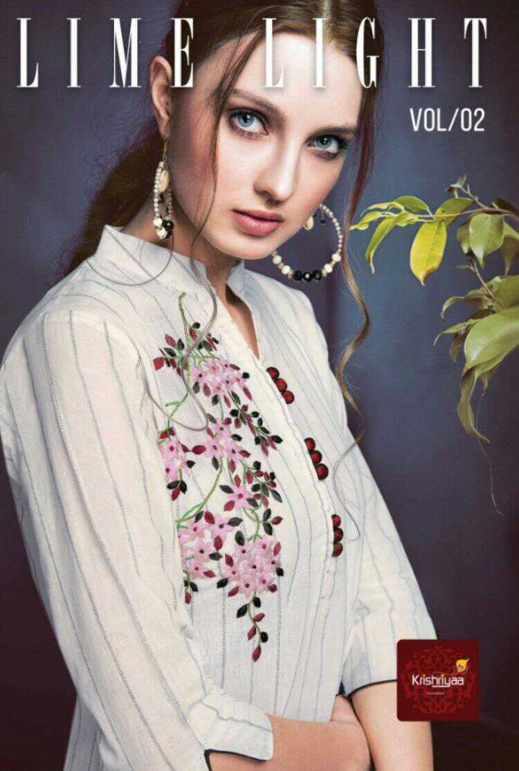 Buy Online Limelight Vol 2 By Krishiyaa Fashion Cotton Embroidered Designer Kurtis Wholesale Supplier Gujarat 8 Pcs of Full Catalogue at Wholesale Price. Looking for Limelight Vol 2 By Krishiyaa Fashion Cotton Embroidered Designer Kurtis Wholesale Supplier Gujarat Full Catalouge at Best Price? Buy Now Limelight Vol 2 By Krishiyaa Fashion Cotton Embroidered Designer Kurtis Wholesale Supplier Gujarat at Wholesale Rate of Rs 8240 with Total 8 Pcs from authroized dealer and supplier of KRISHRYAA Brand. Cost of Each piece is just only Rs 1030 which is very low and affordable price to resale the product in your retail store ,This is Surat based Wholesale Supplier & Dealer of KRISHRYAA Brand. Click on Brand name to Know more about KRISHRYAA Brand's products.Call or Whatsapp on 9898838984 for booking or enquiry