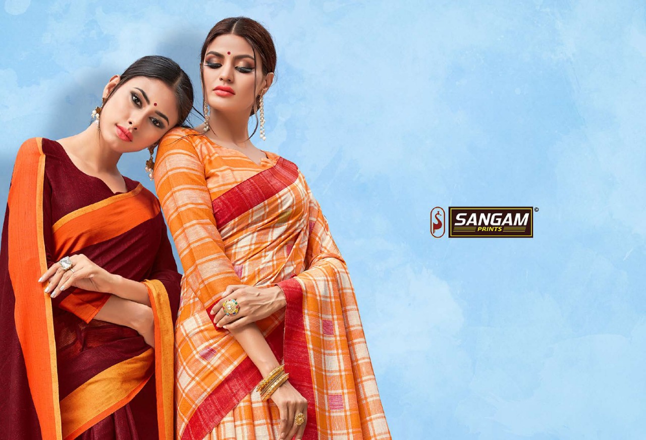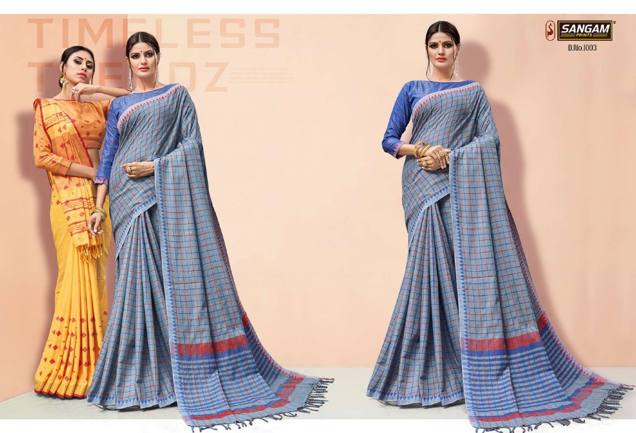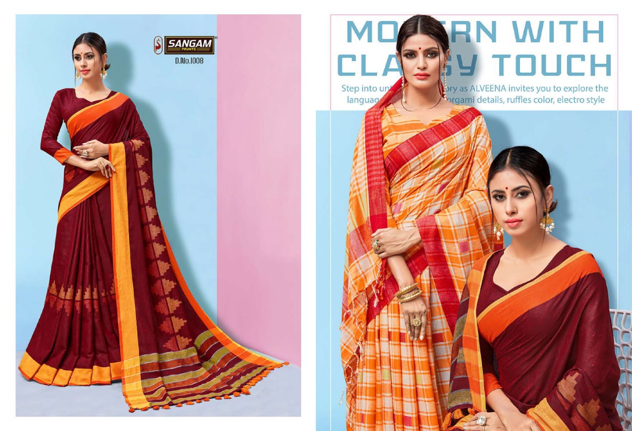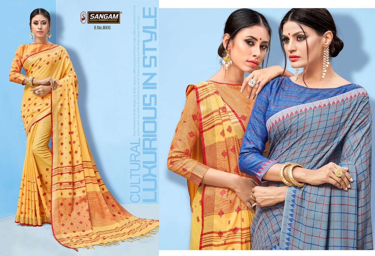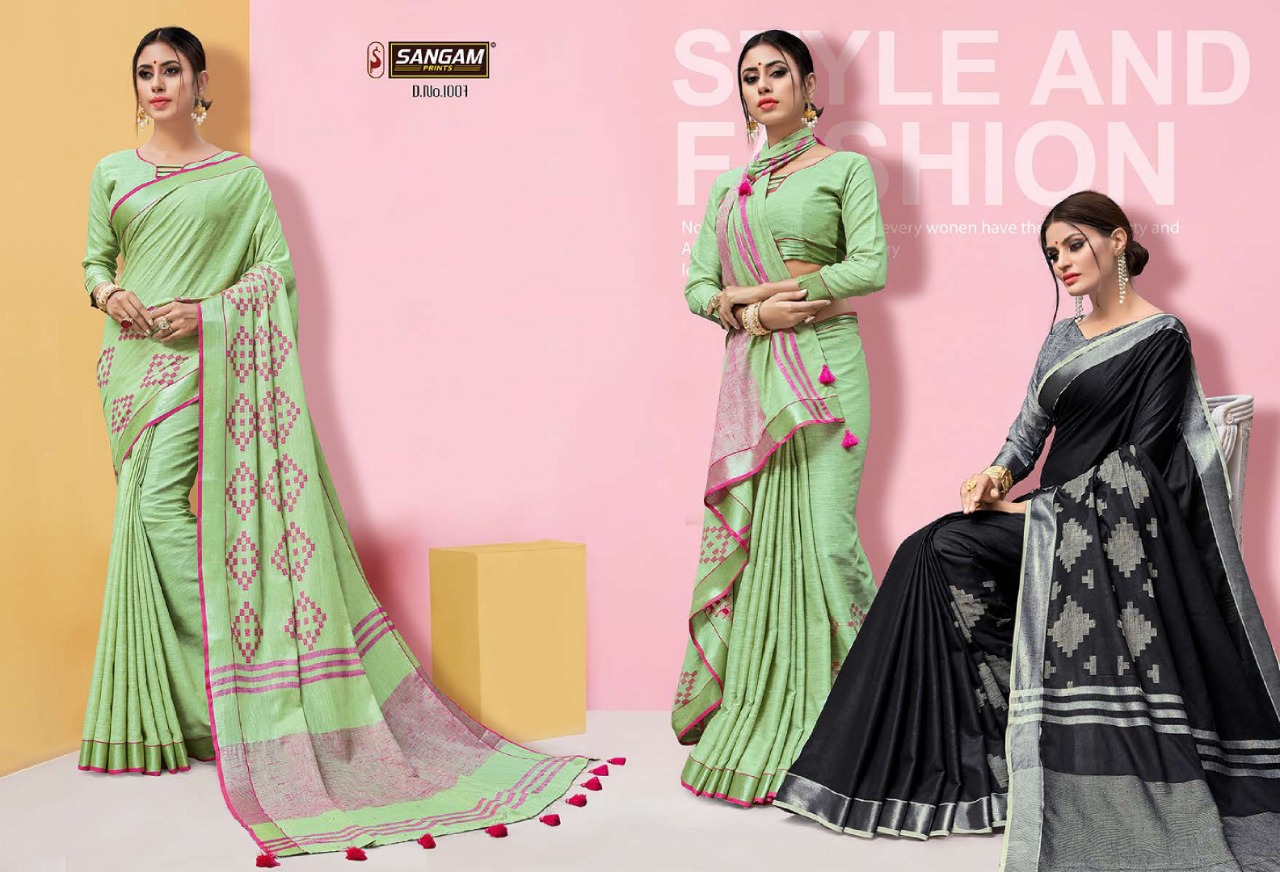 Linen Handloom By Sangam 1001 Series Fancy Cotton Silk Saree Catlog Wholesale Dealer Surat