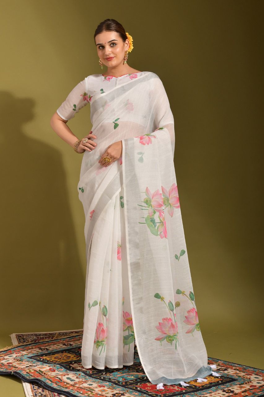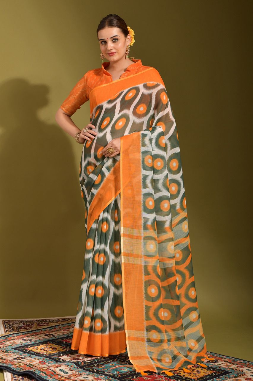 Buy Online Linen Jumka Vol 1 Digital Print Sarees 8 Pcs of Full Catalogue at Wholesale Price. Looking for Linen Jumka Vol 1 Digital Print Sarees Full Catalouge at Best Price? Buy Now Linen Jumka Vol 1 Digital Print Sarees at Wholesale Rate of Rs 4792 with Total 8 Pcs from authroized dealer and supplier of Brand. Cost of Each piece is just only Rs 599 which is very low and affordable price to resale the product in your retail store ,This is Surat based Wholesale Supplier & Dealer of Brand. Click on Brand name to Know more about Brand's products.Call or Whatsapp on 9898838984 for booking or enquiry