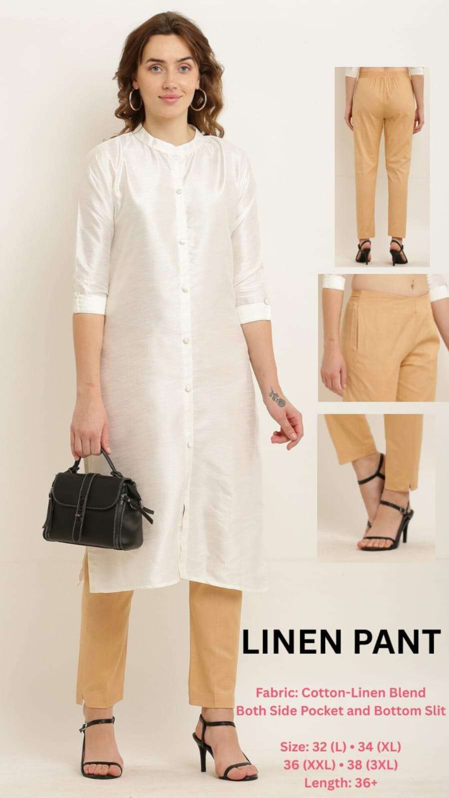 *LINEN PANT* *Fabric:* Cotton-Linen Blend *Style:* Ethnic and Casual *USP:* New Smart Pattern *Feature:* Both Side Pocket and Bottom Slit