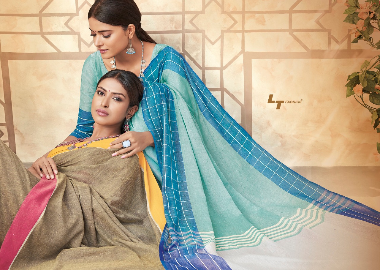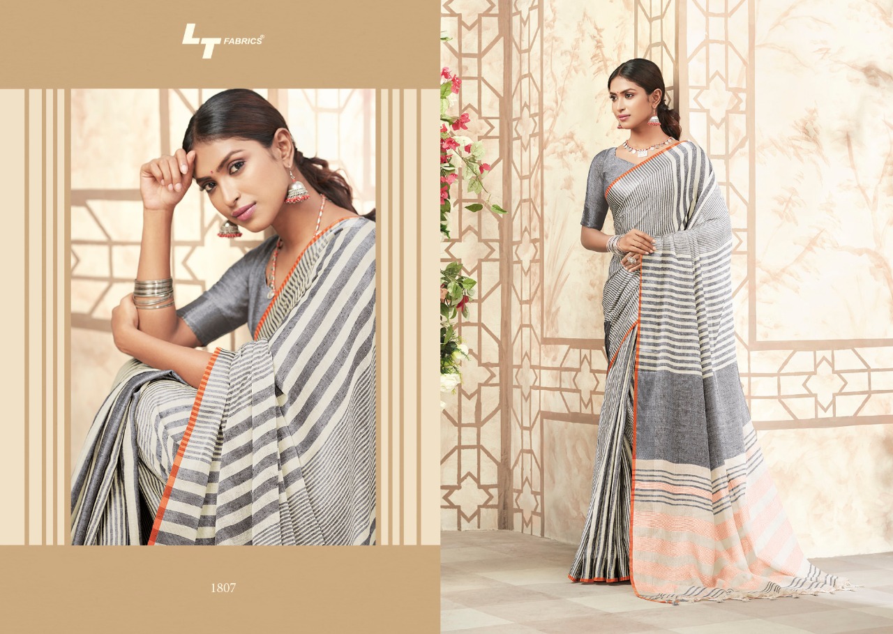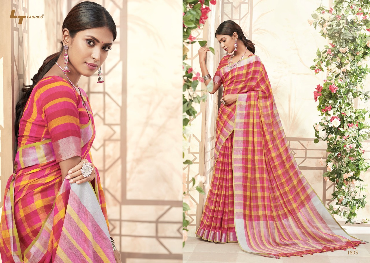Linen Silk By Lt Fabrics 1801 Series Fancy Linen Silk Printed Saree Catlog Wholesale Dealer Surat