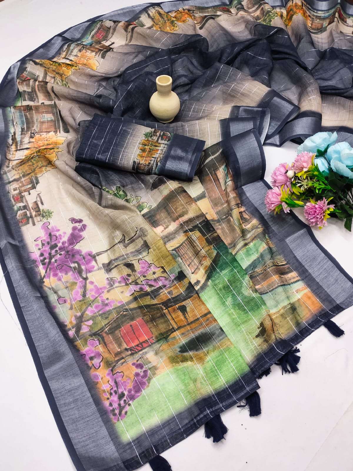 Grace your wardrobe with this Linen Silver Saree, crafted with a beautiful zari border and elegant designer patterns that give a classy, premium look. Comes with a perfectly matched contrast blouse piece, making it ideal for festive, office, and daily elegant wear. 🤩 Wow Price: ₹599 only ✔️ PQR Promise – Price, Quality & Range assured 📌 Note: