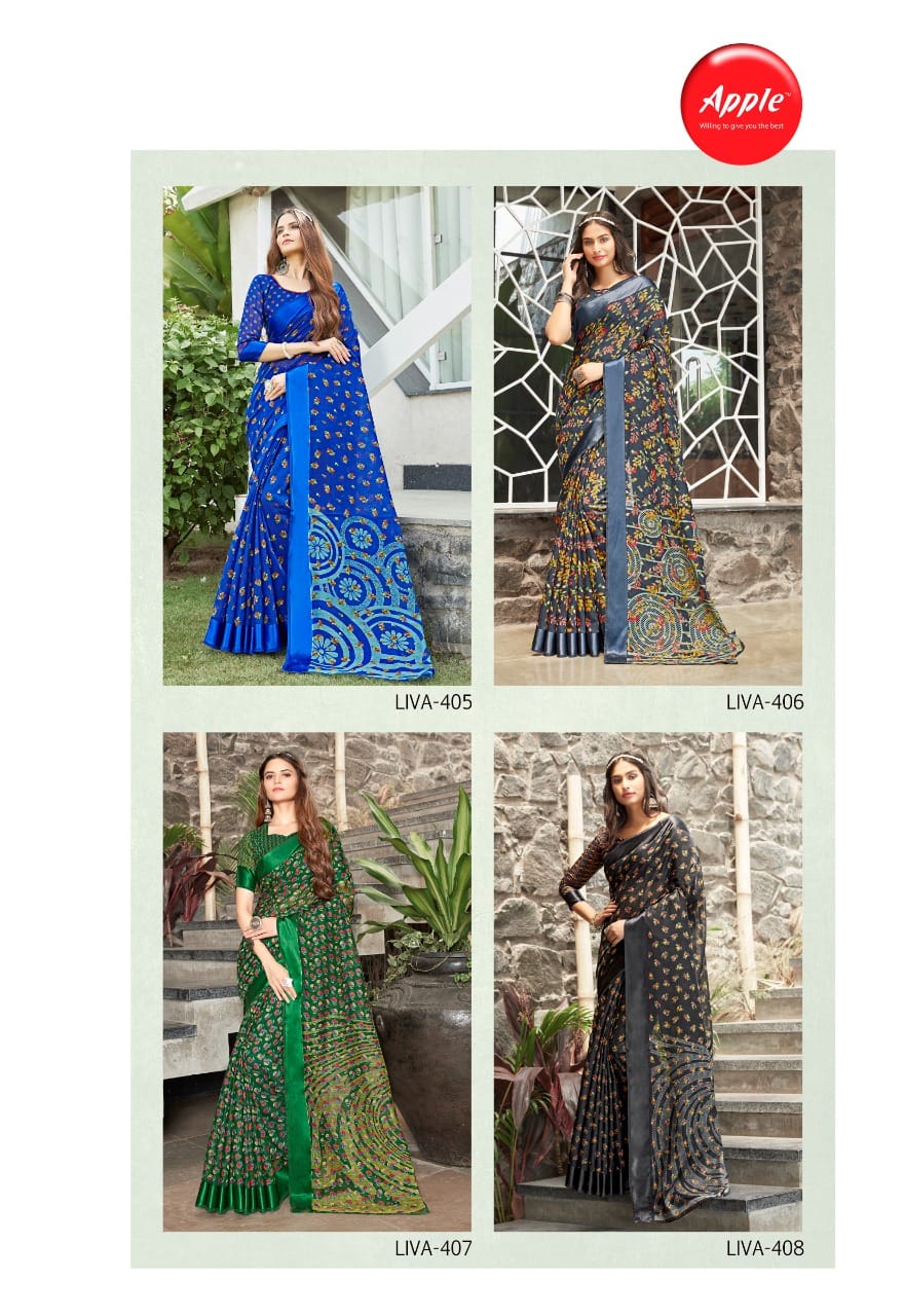 Buy Online Liva Vol 4 By Apple Saree Wholesaler Supplier From Surat 8 Pcs of Full Catalogue at Wholesale Price. Looking for Liva Vol 4 By Apple Saree Wholesaler Supplier From Surat Full Catalouge at Best Price? Buy Now Liva Vol 4 By Apple Saree Wholesaler Supplier From Surat at Wholesale Rate of Rs 3000 with Total 8 Pcs from authroized dealer and supplier of APPLE Brand. Cost of Each piece is just only Rs 375 which is very low and affordable price to resale the product in your retail store ,This is Surat based Wholesale Supplier & Dealer of APPLE Brand. Click on Brand name to Know more about APPLE Brand's products.Call or Whatsapp on 9898838984 for booking or enquiry