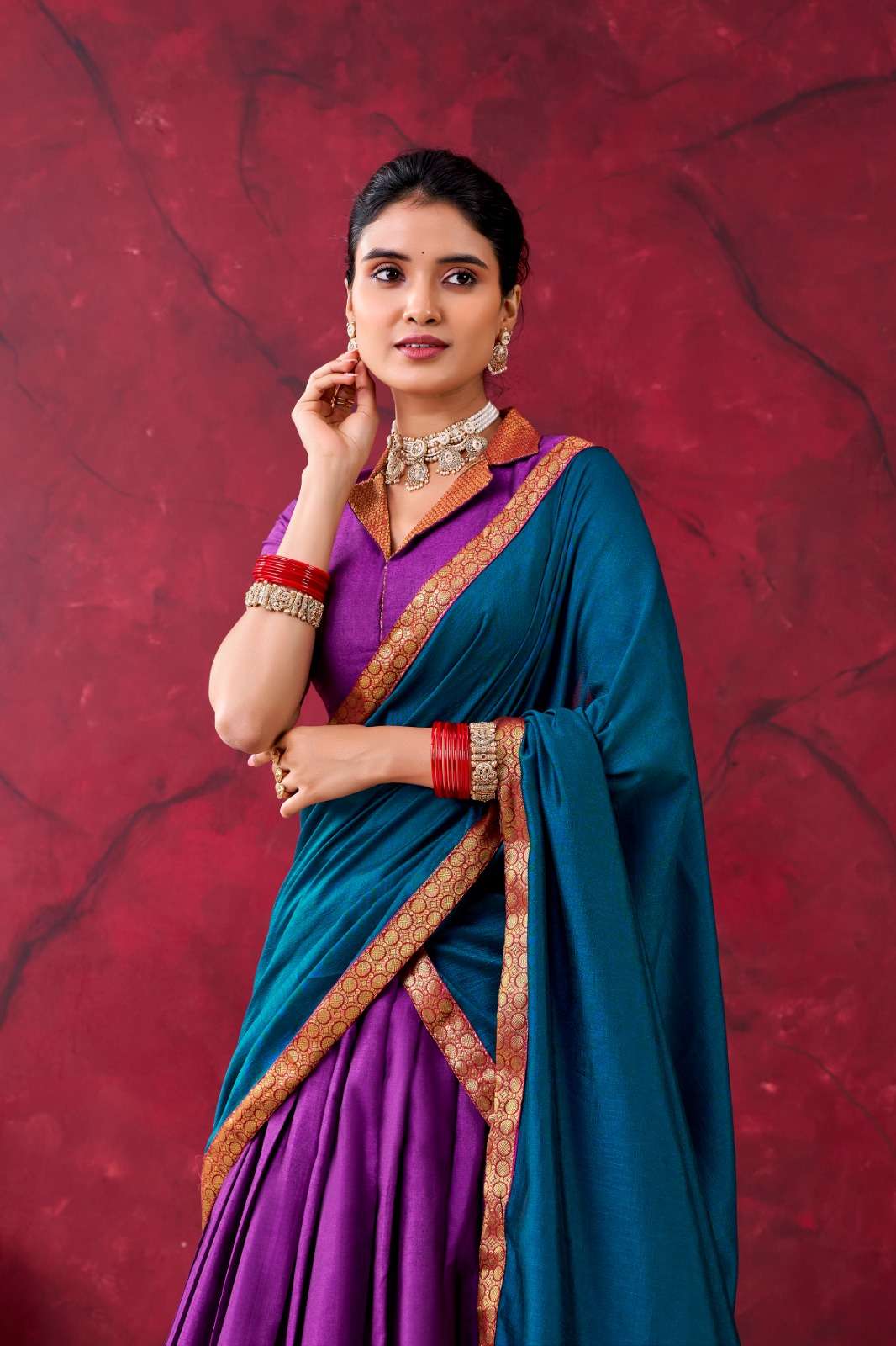 *Blouse (Unstitched)* Blouse fabric : Narayan Pet Blouse Work : Zari Weaving Wok Blouse Length : 1 Meter