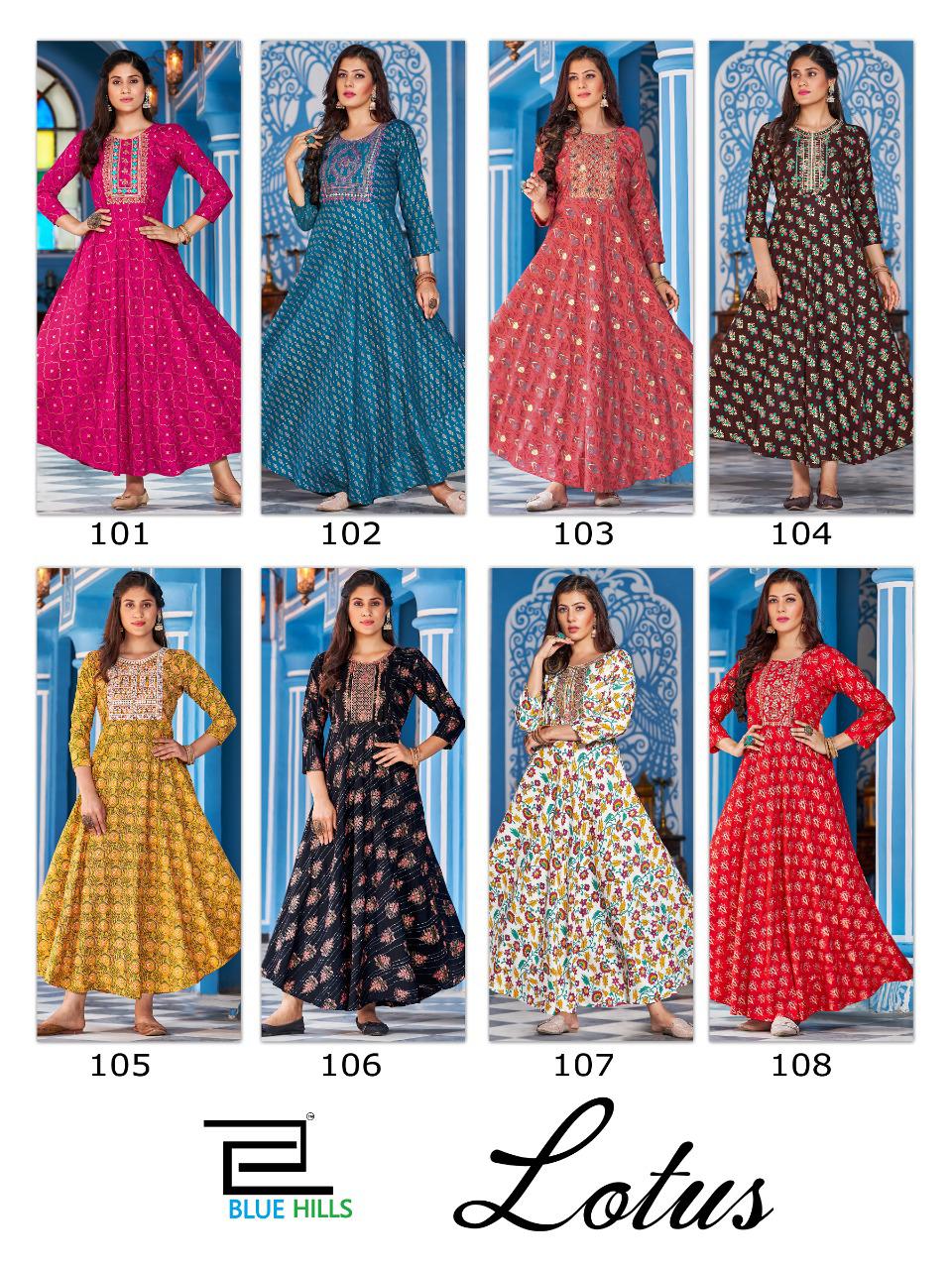 Buy Online Lotus By Blue Hills Designer Rayon Long Kurti Wholesaler Supplier From Surat 8 Pcs of Full Catalogue at Wholesale Price. Looking for Lotus By Blue Hills Designer Rayon Long Kurti Wholesaler Supplier From Surat Full Catalouge at Best Price? Buy Now Lotus By Blue Hills Designer Rayon Long Kurti Wholesaler Supplier From Surat at Wholesale Rate of Rs 5000 with Total 8 Pcs from authroized dealer and supplier of Brand. Cost of Each piece is just only Rs 625 which is very low and affordable price to resale the product in your retail store ,This is Surat based Wholesale Supplier & Dealer of Brand. Click on Brand name to Know more about Brand's products.Call or Whatsapp on 9898838984 for booking or enquiry