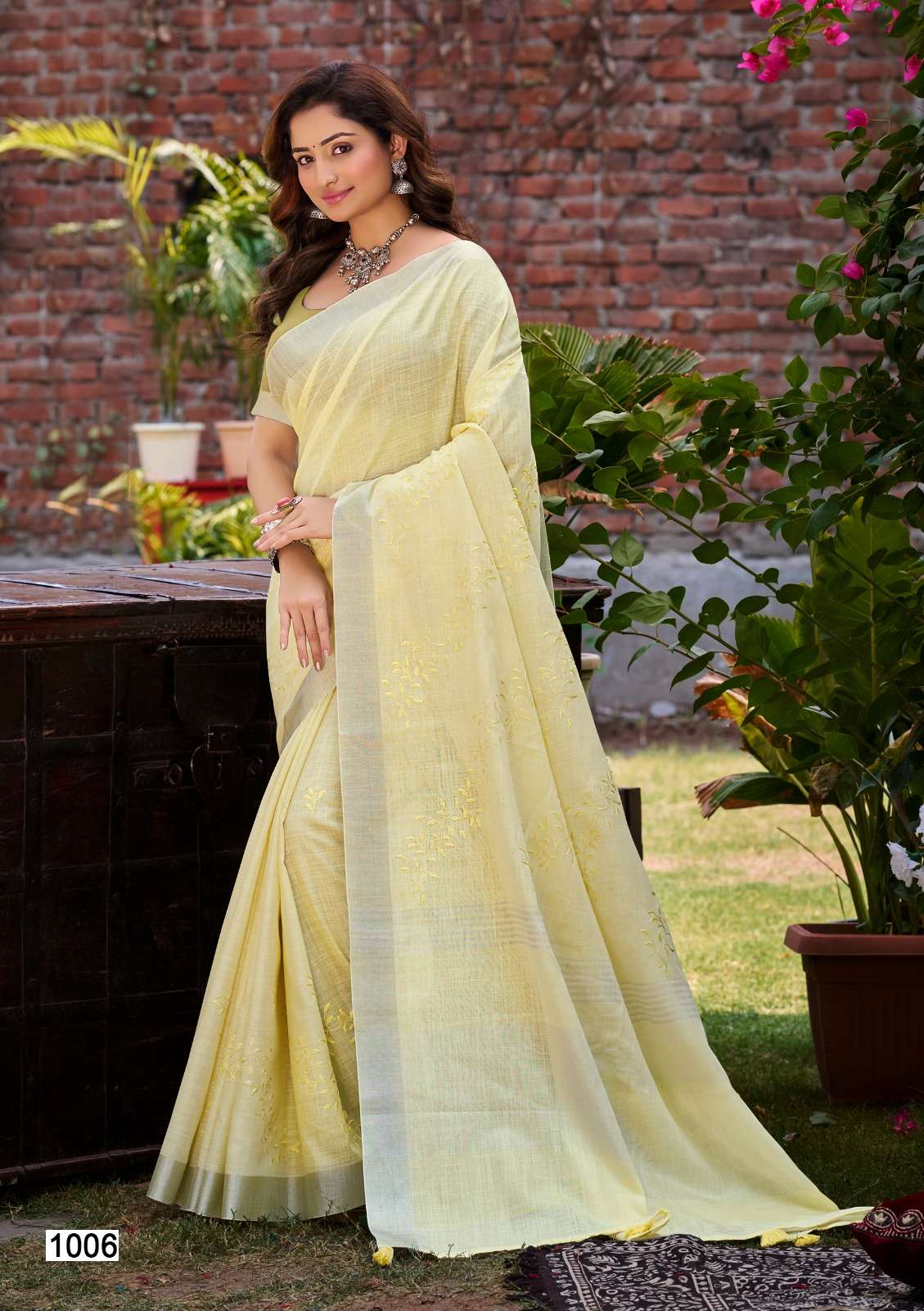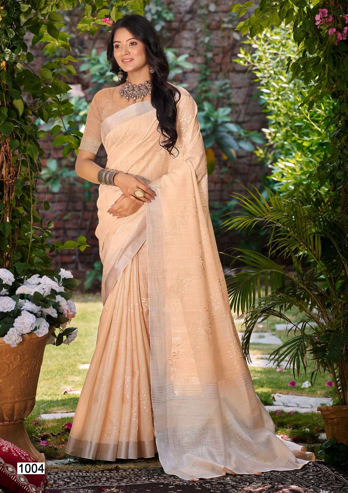 Brand - Bunawat Catalogue Name : Lotus Saree Fabric : Linen Blouse Fabric : Linen Price : 825 per pcs GST 5% Extra. Single avaialble. Ready to ship. |