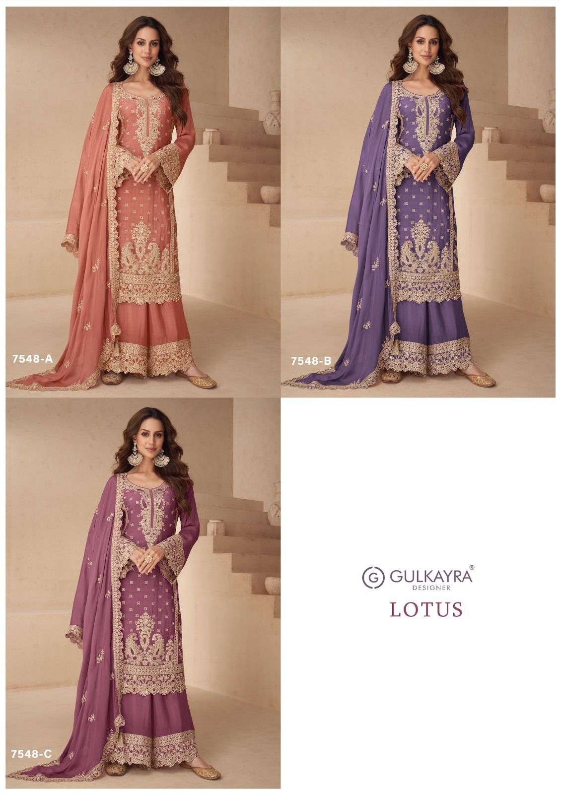 Buy Online LOTUS by Gulkayra Designer Suit collection manufacturer Surat 3 Pcs of Full Catalogue at Wholesale Price. Looking for LOTUS by Gulkayra Designer Suit collection manufacturer Surat Full Catalouge at Best Price? Buy Now LOTUS by Gulkayra Designer Suit collection manufacturer Surat at Wholesale Rate of Rs 8685 with Total 3 Pcs from authroized dealer and supplier of Gulkayra designer Brand. Cost of Each piece is just only Rs 2895 which is very low and affordable price to resale the product in your retail store ,This is Surat based Wholesale Supplier & Dealer of Gulkayra designer Brand. Click on Brand name to Know more about Gulkayra designer Brand's products.Call or Whatsapp on 9898838984 for booking or enquiry