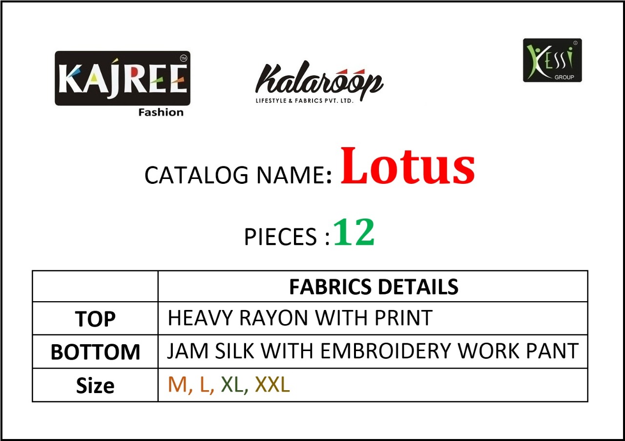 Buy Online Lotus By Kalaroop Reyon Kurtis With Bottom Wholesale Supplier And Dealer Surat 12 Pcs of Full Catalogue at Wholesale Price. Looking for Lotus By Kalaroop Reyon Kurtis With Bottom Wholesale Supplier And Dealer Surat Full Catalouge at Best Price? Buy Now Lotus By Kalaroop Reyon Kurtis With Bottom Wholesale Supplier And Dealer Surat at Wholesale Rate of Rs 8100 with Total 12 Pcs from authroized dealer and supplier of Brand. Cost of Each piece is just only Rs 675 which is very low and affordable price to resale the product in your retail store ,This is Surat based Wholesale Supplier & Dealer of Brand. Click on Brand name to Know more about Brand's products.Call or Whatsapp on 9898838984 for booking or enquiry