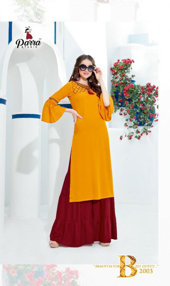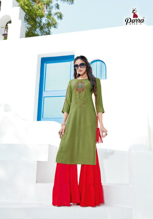 Buy Online Lovely By Parra Studio Reyon Kurtis With Sharara Wholesale Supplier Gujarat 7 Pcs of Full Catalogue at Wholesale Price. Looking for Lovely By Parra Studio Reyon Kurtis With Sharara Wholesale Supplier Gujarat Full Catalouge at Best Price? Buy Now Lovely By Parra Studio Reyon Kurtis With Sharara Wholesale Supplier Gujarat at Wholesale Rate of Rs 4893 with Total 7 Pcs from authroized dealer and supplier of Parra Studio Brand. Cost of Each piece is just only Rs 699 which is very low and affordable price to resale the product in your retail store ,This is Surat based Wholesale Supplier & Dealer of Parra Studio Brand. Click on Brand name to Know more about Parra Studio Brand's products.Call or Whatsapp on 9898838984 for booking or enquiry