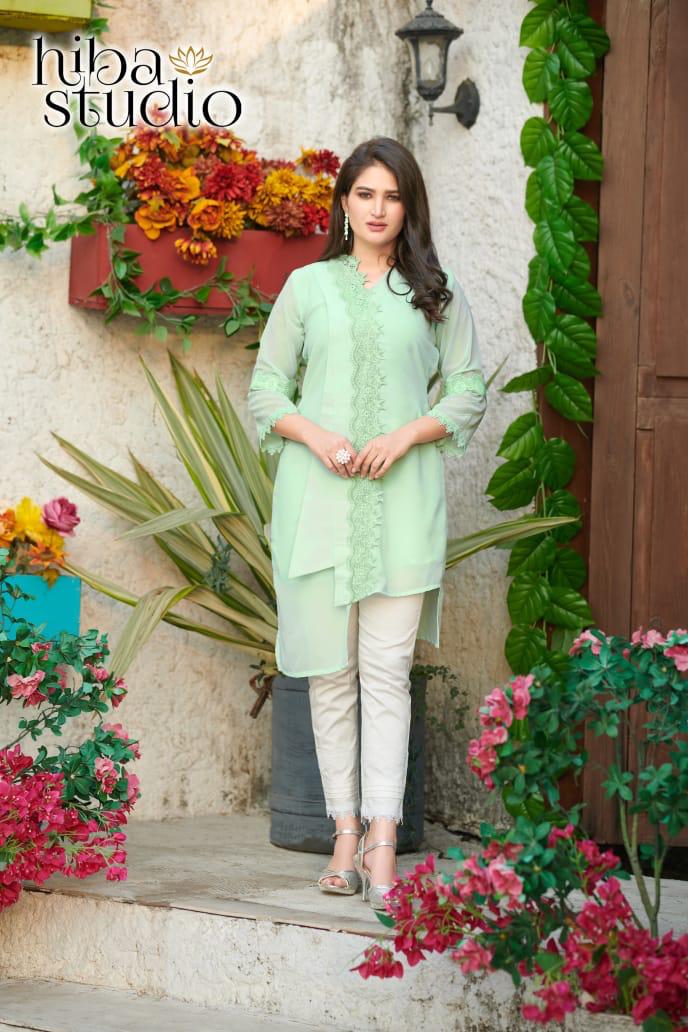 ? *Ramzan Special Edition* ? *LPC-35* BY _*HIBA STUDIO*_ ???????????????? ?? *Discription*?? ???????????????? *Glamorous Tunic* of latest *cross stitched pattern Emblished with designer laces* Paired with *Designer Cigarette Pant* with *laces and plits..* ? *Details*? ??????? ? *Top*:- Pure Georgette Fabric ? *Bottom* :- Pure Cotton Stretchable ? *Colour* Olive Green | Light Pink | Bluffy Purlpal ?? *Size Chart*?? ?? Top L size chest *(38)* ?? Bottom L size *(28-34)* ?? Top XL size chest *(42)* ?? Bottom XL size *(36-42)* ?? Top Xxl size chest *(46)* ?? Bottom Xxl size *(44-46)* ? *Rate* 1399/-each *Full Set Available* (Full Set contains 3 color in 3 sizes.. Total 9 pic) ?Colors May slightly very Due to Light Effect? ?? *Ready to Ship*?? |