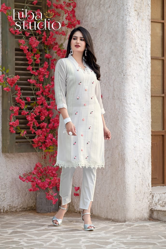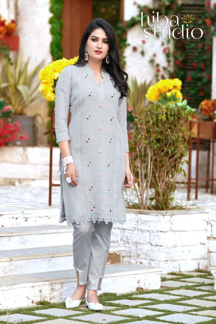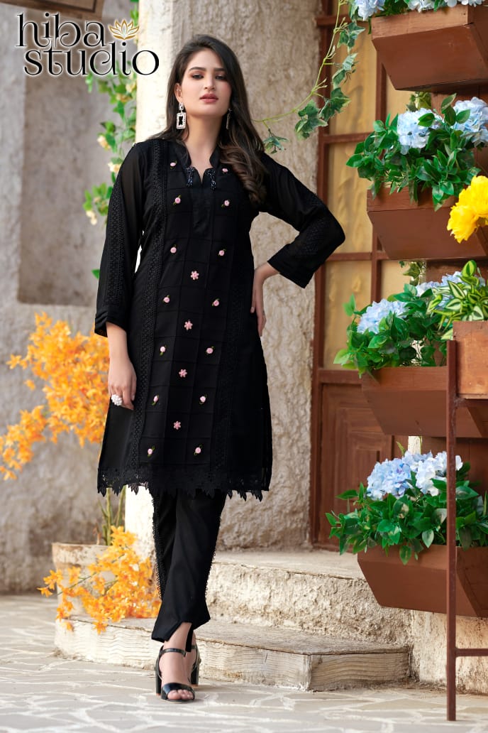 *Gorgeous vibes* *LPC-37* BY _*HIBA STUDIO*_ ???????????????? ? *Description*? ???????????????? *A mesmerizing tunic with symmetrical stitched pattern in front coupled with Embellishment of flowers and brooch on collar to enhance your looks. It can be paired with modern style cigarette pants* ????????? ? *DETAILS*? ????????? ? *Top*:- Pure Georgette Fabric ? *Bottom* :- Pure Cotton Stretchable ? *Colour* Onix Black, Smoke White, Porcelain Grey ?? *Size Chart*?? ? Top L size chest *(40)* ? Bottom L size *(28-34)* ? Top XL size chest *(42)* ? Bottom XL size *(36-42)* ? Top XXL size chest *(44)* ? Bottom XXL size *(42-46)* ? *Rate* 1450/-each ?Colors May slightly very Due to Light Effect? ? *Ready to Ship*? |